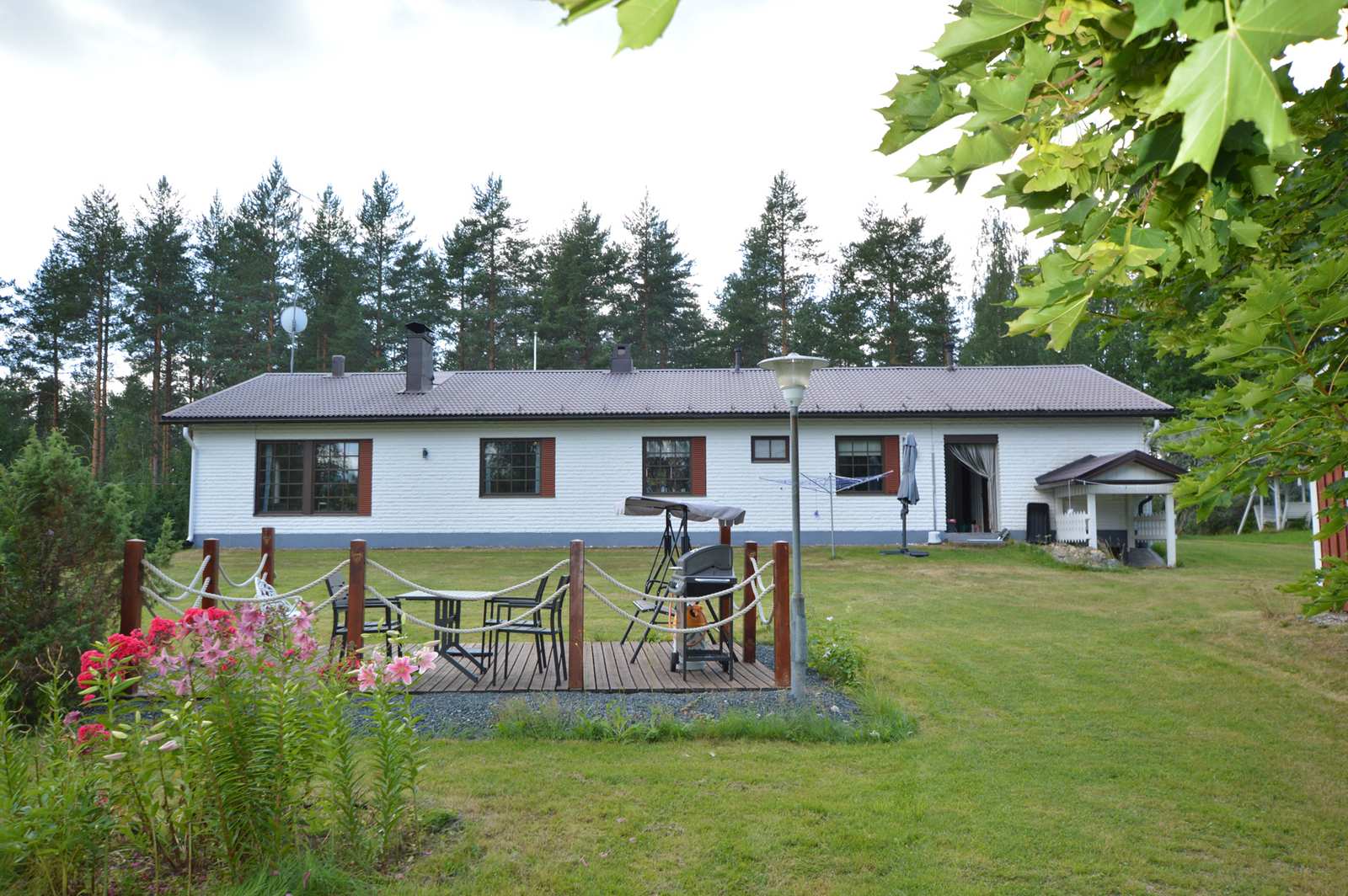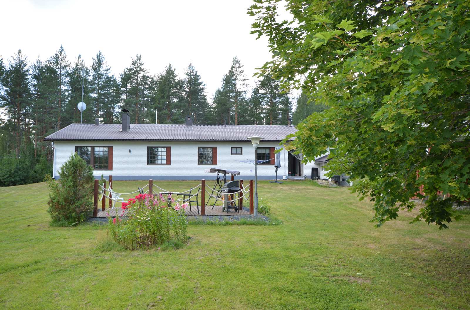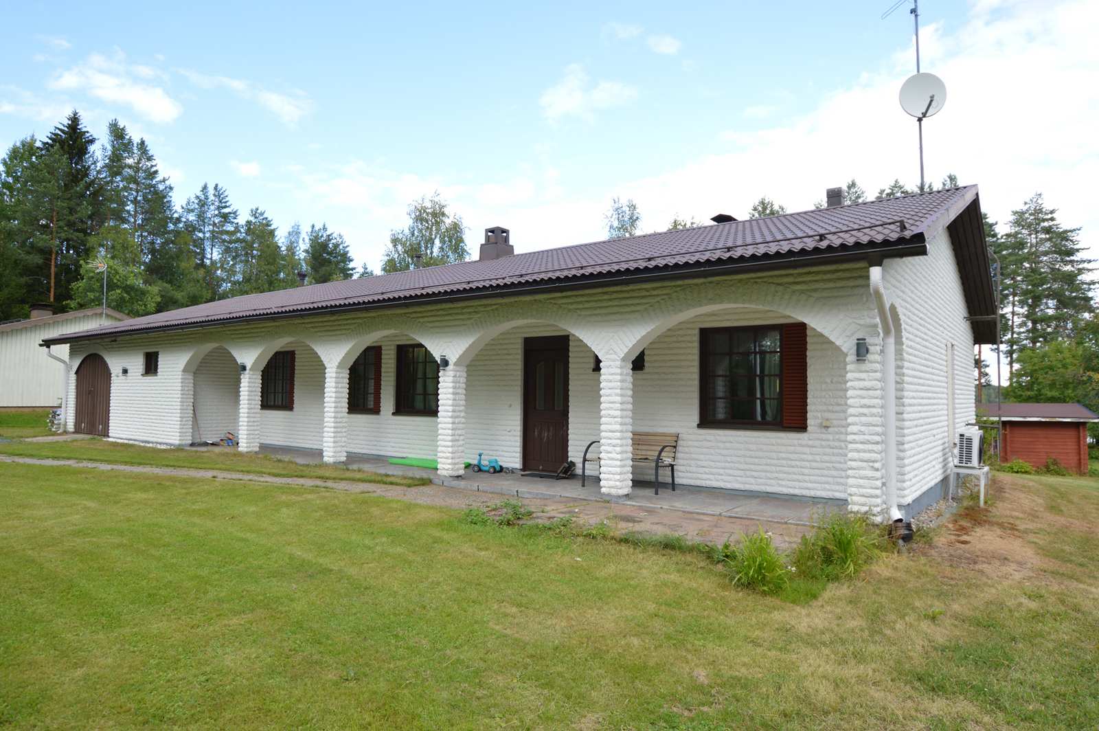 Omalla 3 511 m² tontilla kalaisan Suuri-Säyneisen rannalla valkoinen lohkotiiliverhoiltu omakotitalo, jossa mm. 4 makuuhuonetta, tilava tupakeittiö sekä olohuone. Talossa sähkölämmityksen ohella vuolukivinen leivinuuni/takkayhdistelmä sekä ilmalämpöpumppu. Viihtyisä ja vehreä pihapiiri. Rannan tuntumassa saunarakennus, jossa myös takkatupa. Tontilla lisäksi varastorakennus, aitta sekä puuliiteri. Tämä kohde soveltuu mainiosti niin vakituiseen asumiseen kuin myös vapaa-ajankäyttöön. Ota yhteyttä ja sovitaan sinulle oma esittely!