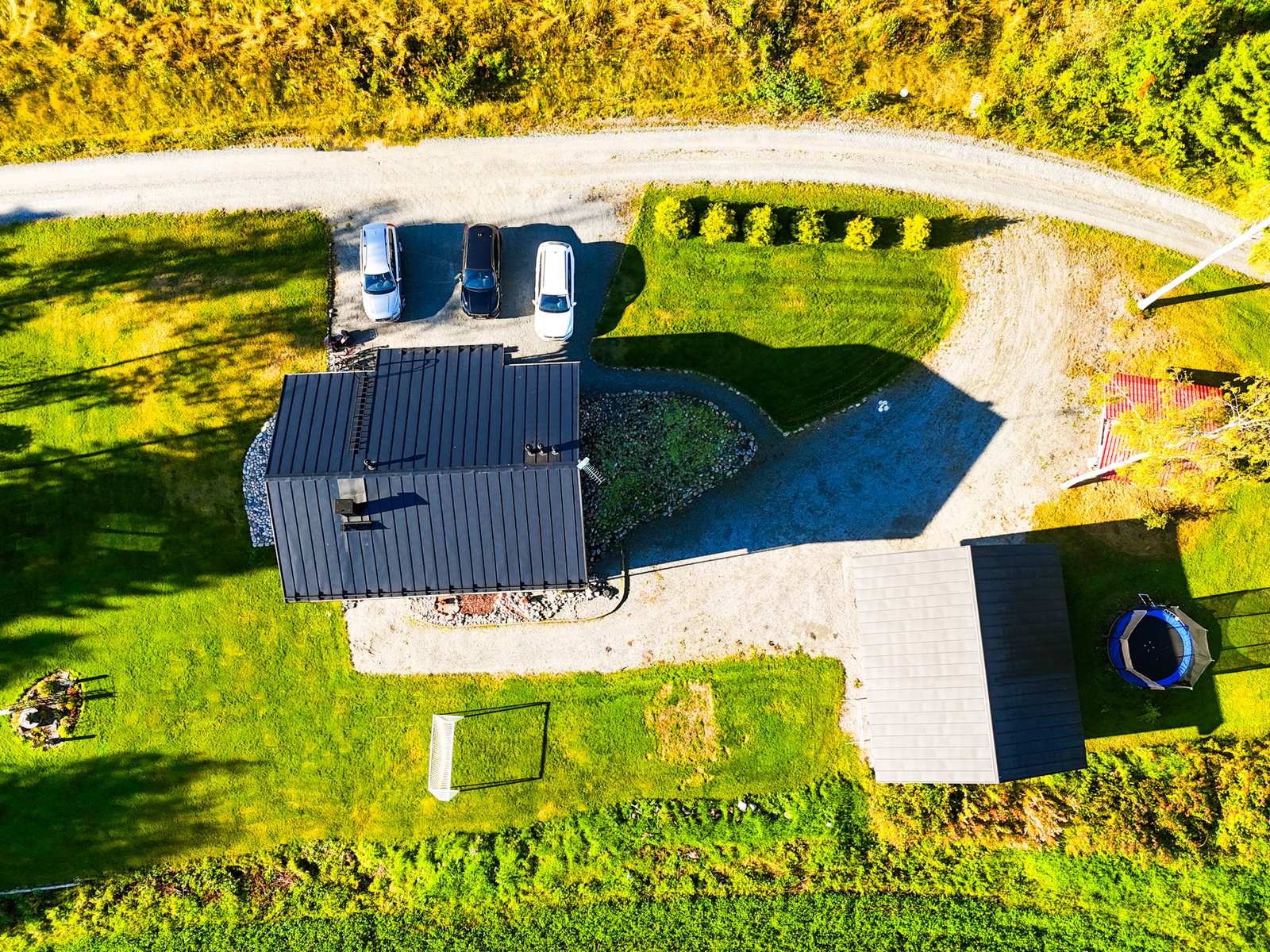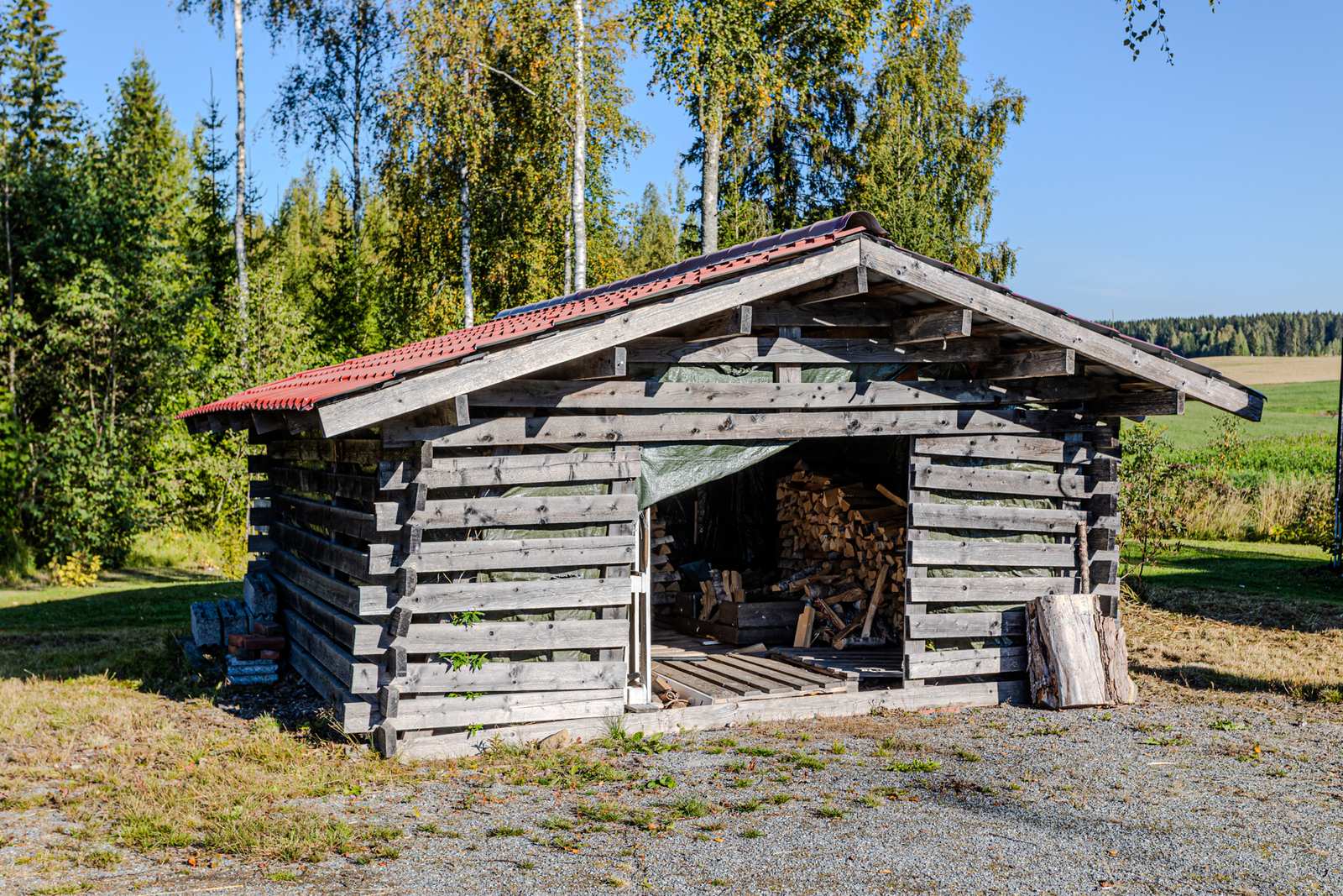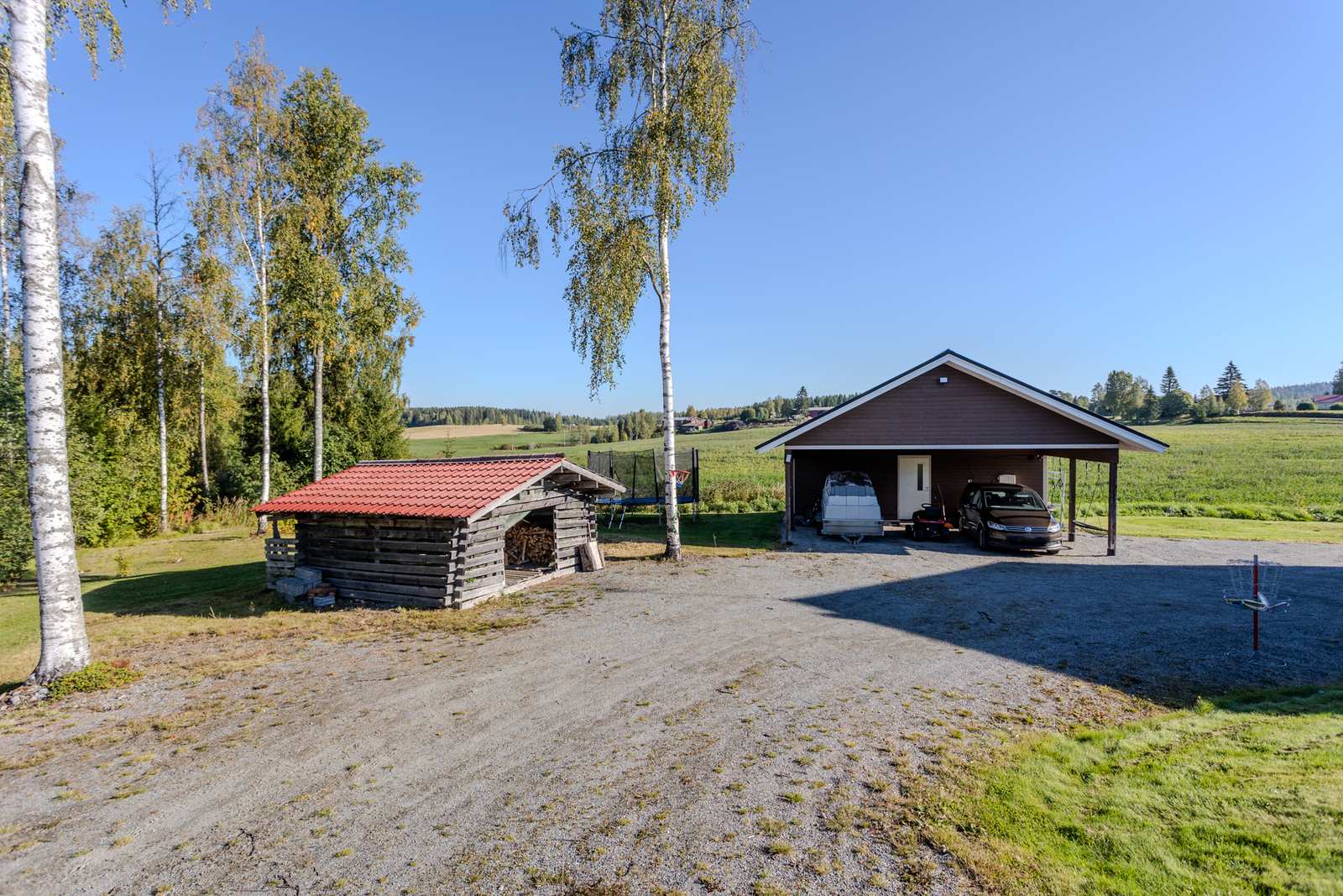Ja autoille löytyy kahden auton katos sekä erillinen varastorakennus.
