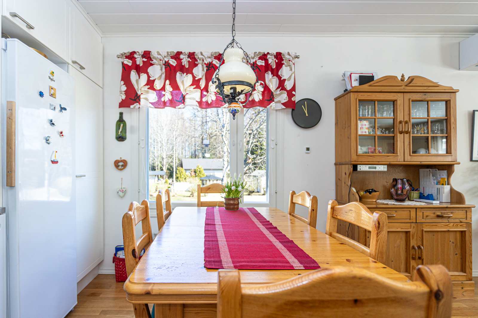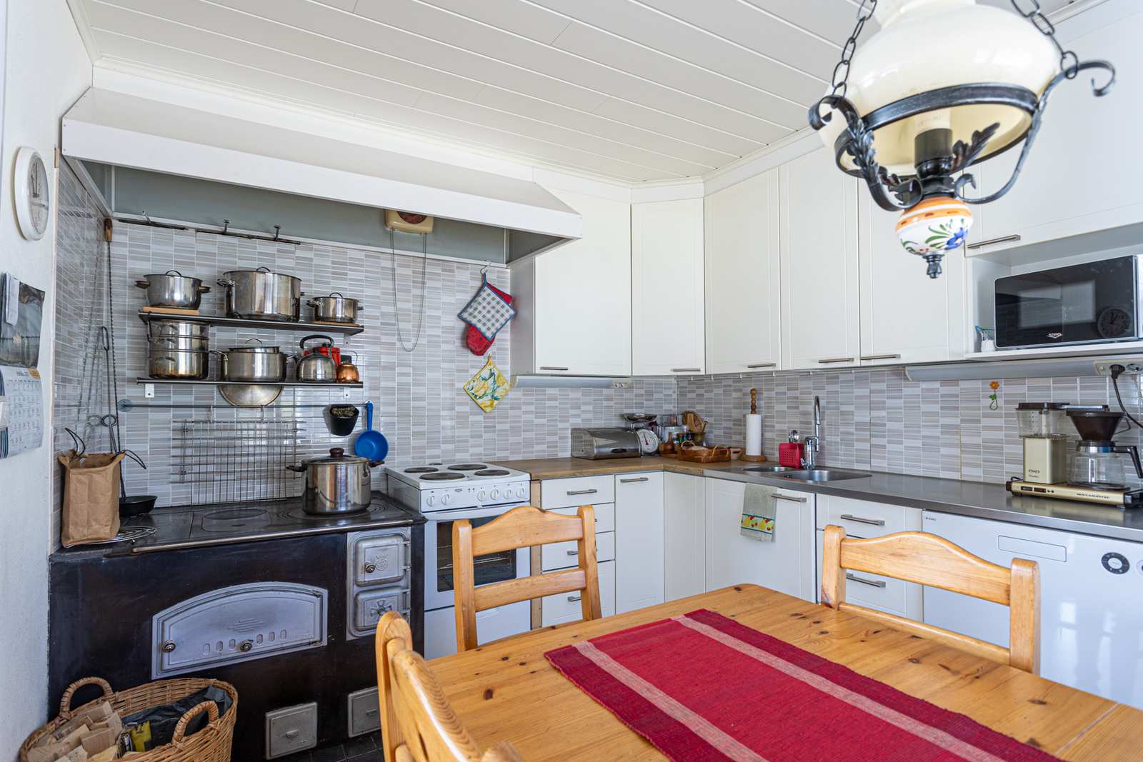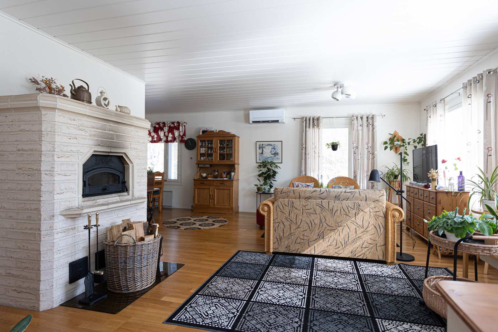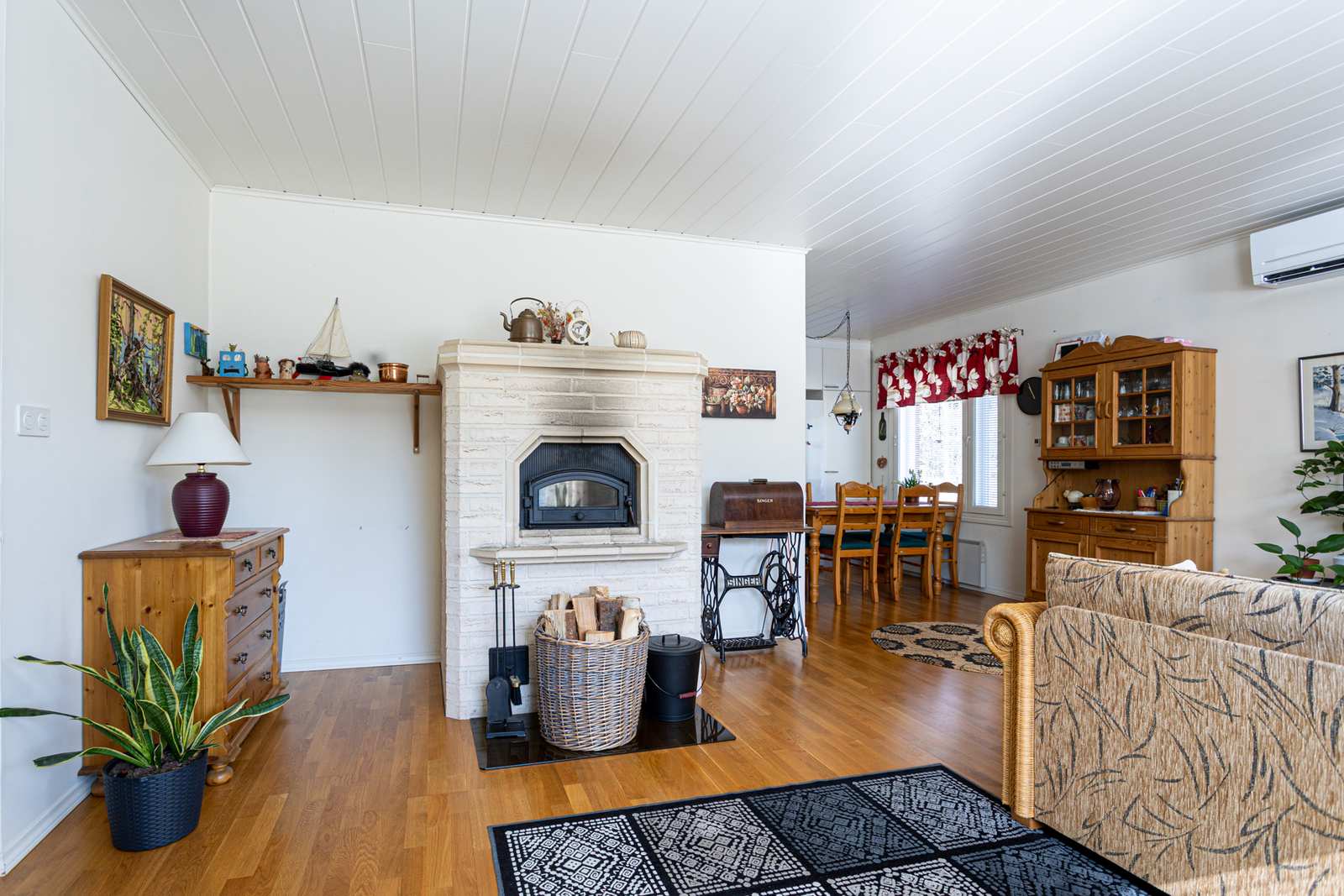 Kodissa tunnelmaa ja energiatehokkuutta tuovat tiilimuurattu leivinuuni, puuhella sekä ilmalämpöpumppu, jotka pitävät asumiskustannukset maltillisina.