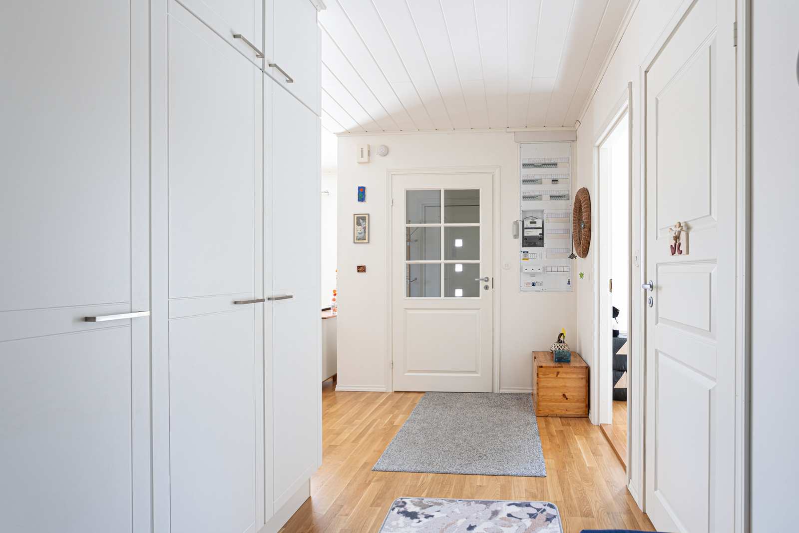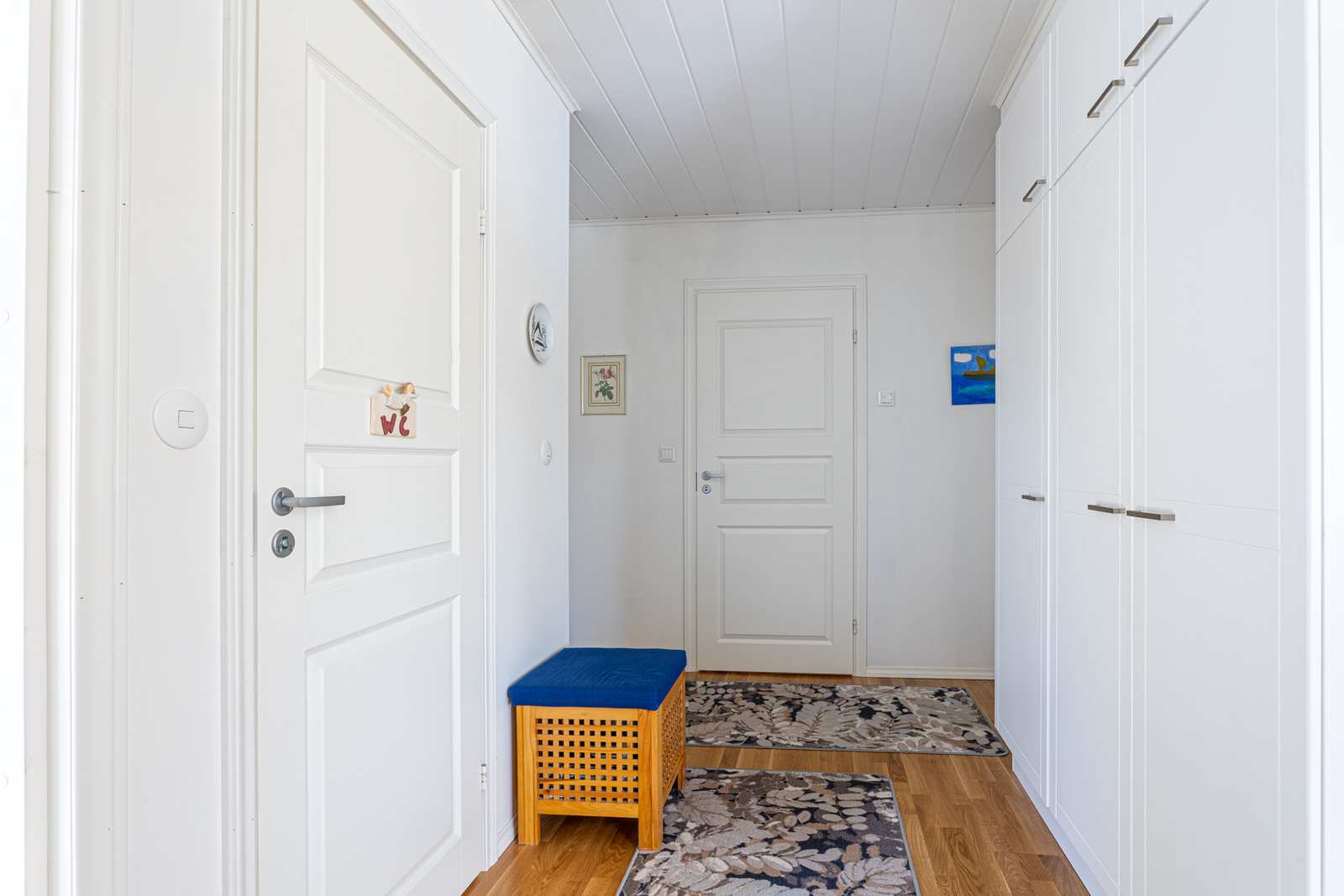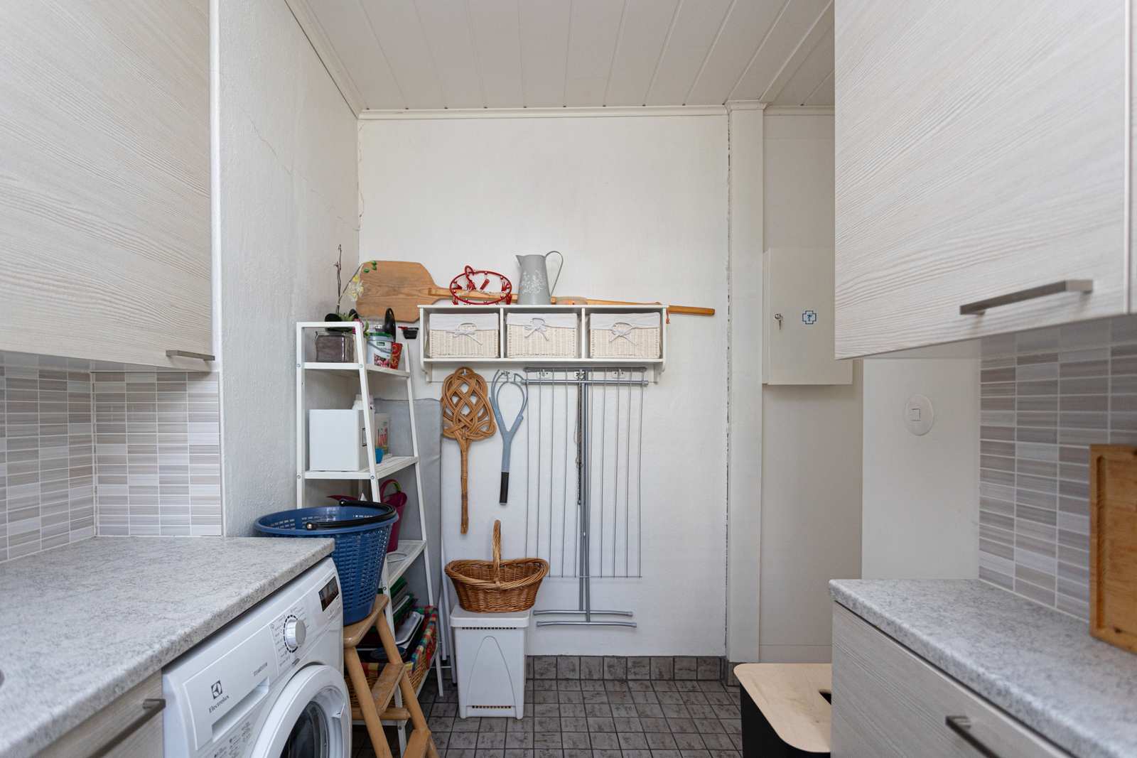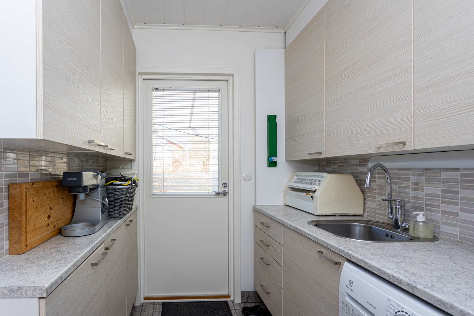 | Kodinhoitohuone | Remontoitu. Runsaasti kaappitilaa. Lattiassa laatta, lattialämmitys. Seinissä laatta ja maali, katossa mdf. Käynti takapihalle. |