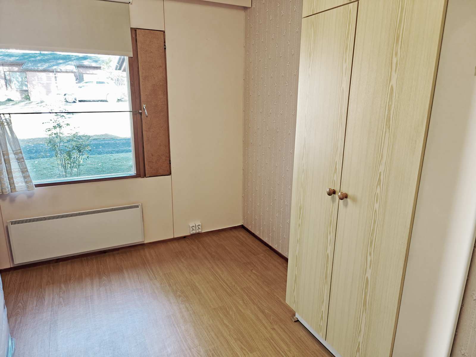 Makuuhuone | 1 kpl. Lattiassa muovimatto, seinissä tapetti ja maali, katossa paneeli. Ikkuna sisääntulon puolelle. |