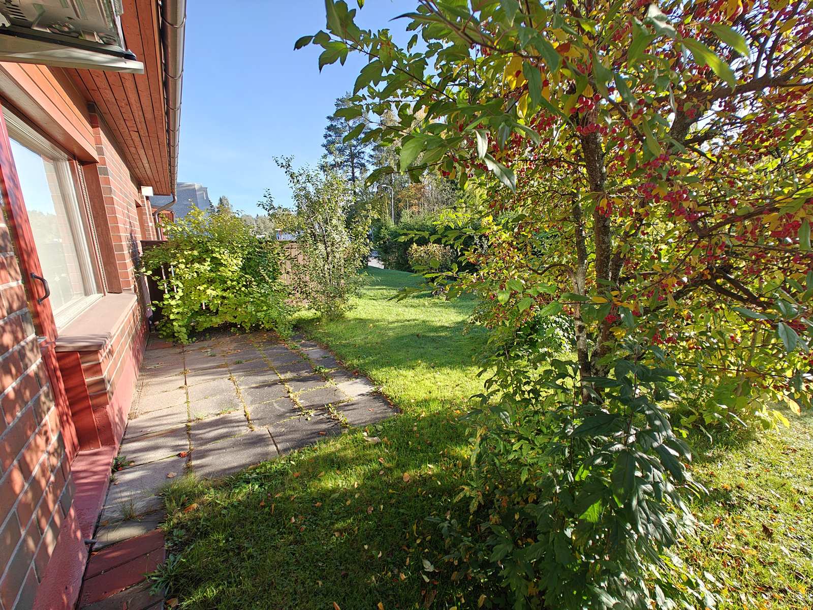 Näkymät | Etupiha/sisääntulo luoteen suuntaan, takapiha kaakon suuntaan. |