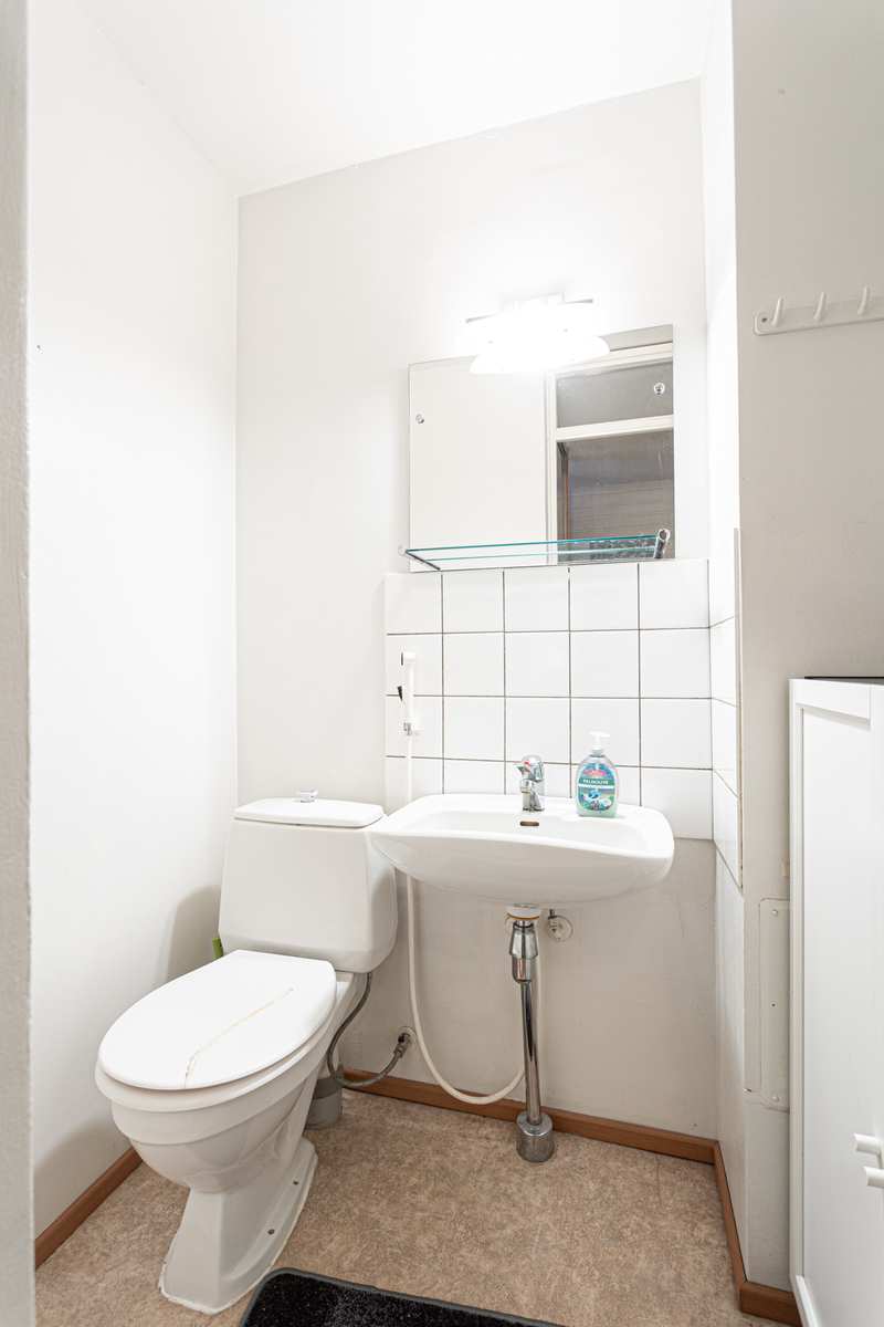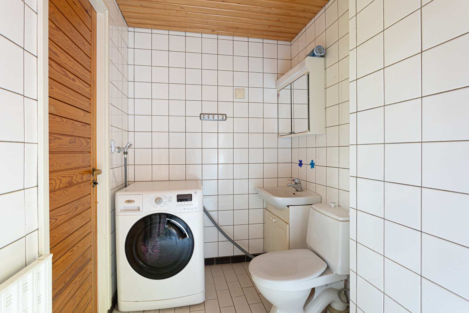 Erillinen WC | 2 kpl. Toinen kph:een yhteydessä. Peili- ja allaskaappi, toisessa pyykinpesukoneen liitäntä. Lattiassa laatta ja muovimatto, seinissä laatta ja maali, katossa maali ja paneeli. |
