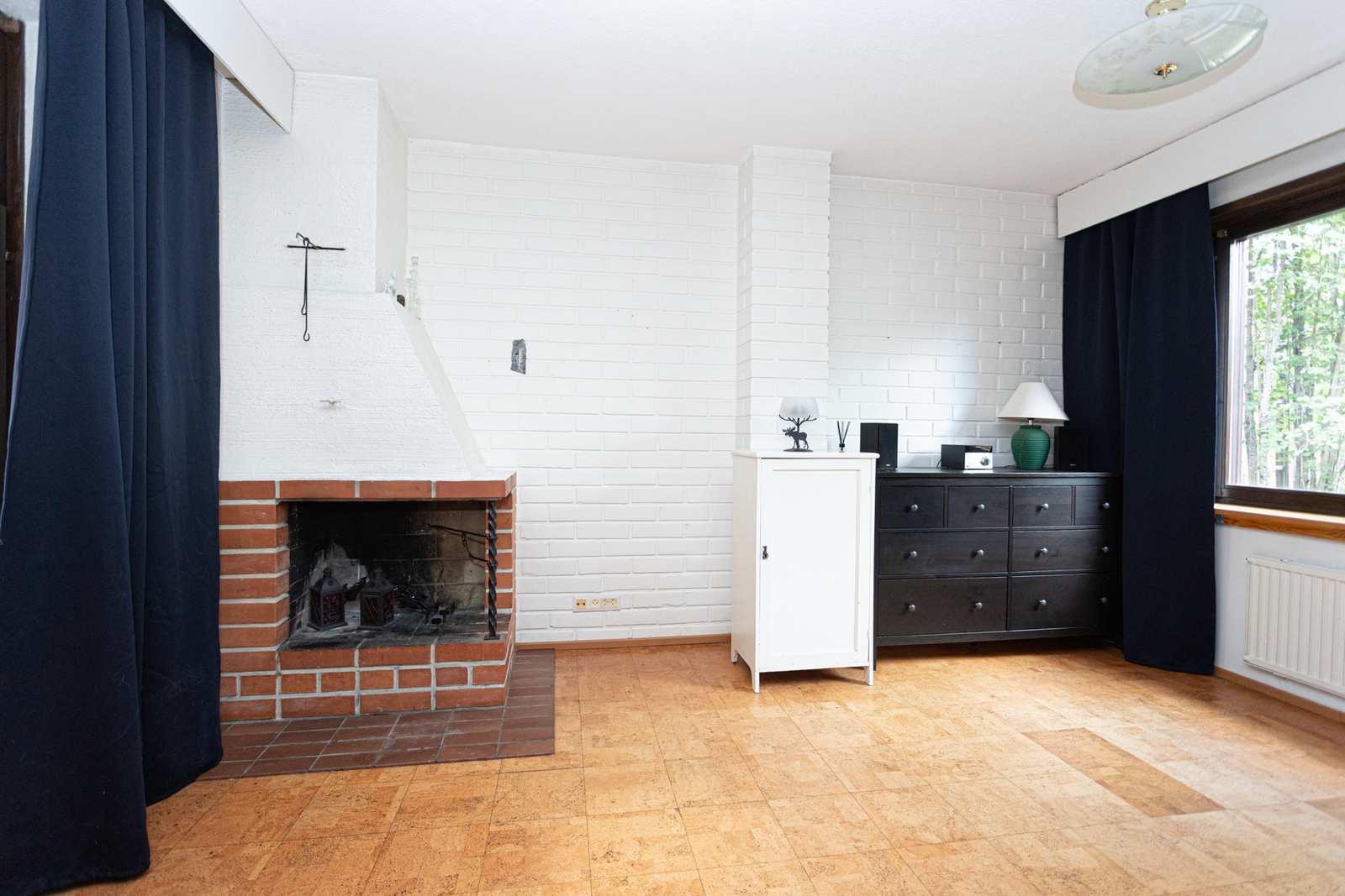 Tilojen kuvaus | Tilava takkahuone, avotakka. Lattiassa korkki, seinissä ja katossa maali. Käynti parvekkeelle. Lisäksi eteinen, tuulikaappi. |