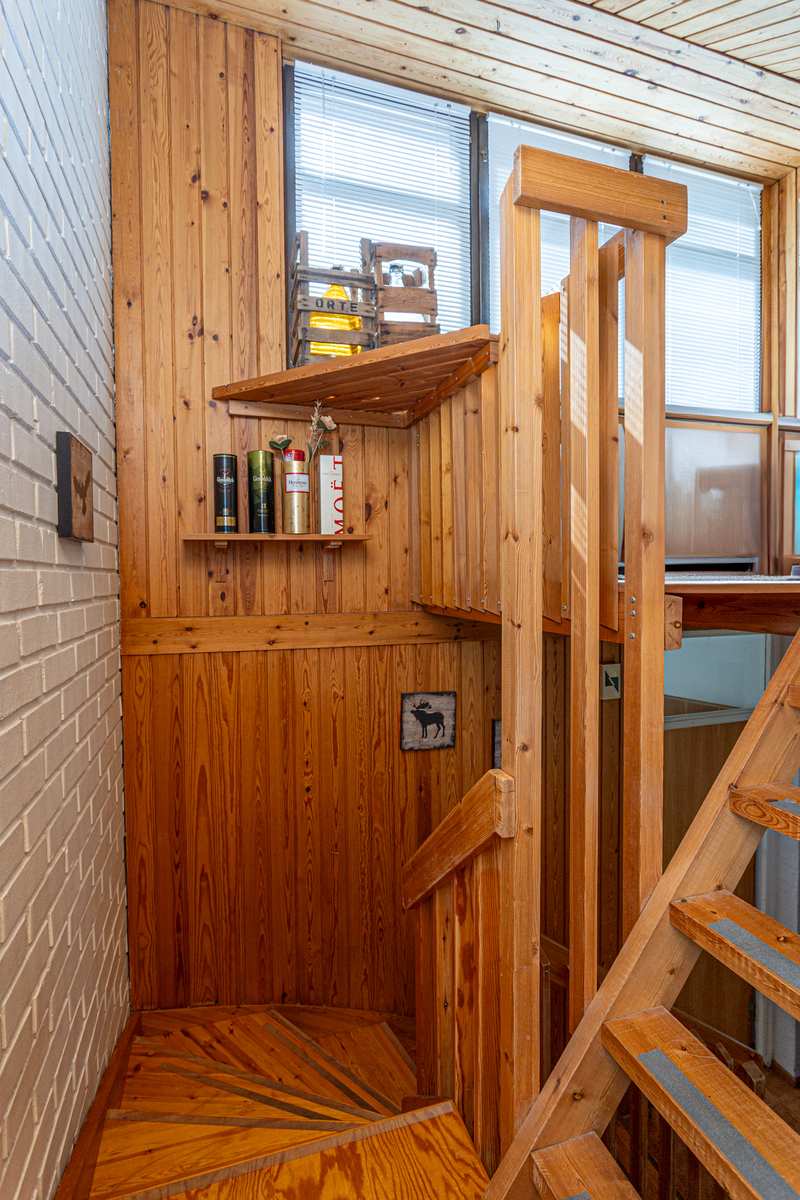 Huoneistossa on tiloja kolmessa tasossa, joten tarvittaessa omaakin rauhaa löytyy. Alakerrassa on erillinen keittiö sekä olohuone. Makuuhuone, takkahuone sekä sauna- ja pesutilat ovat toisessa kerroksessa, josta myös käynti parvekkeelle ja kolmannessa tasossa on parvitilat. Huoneistossa on lisäksi hyvin säilytystiloja.