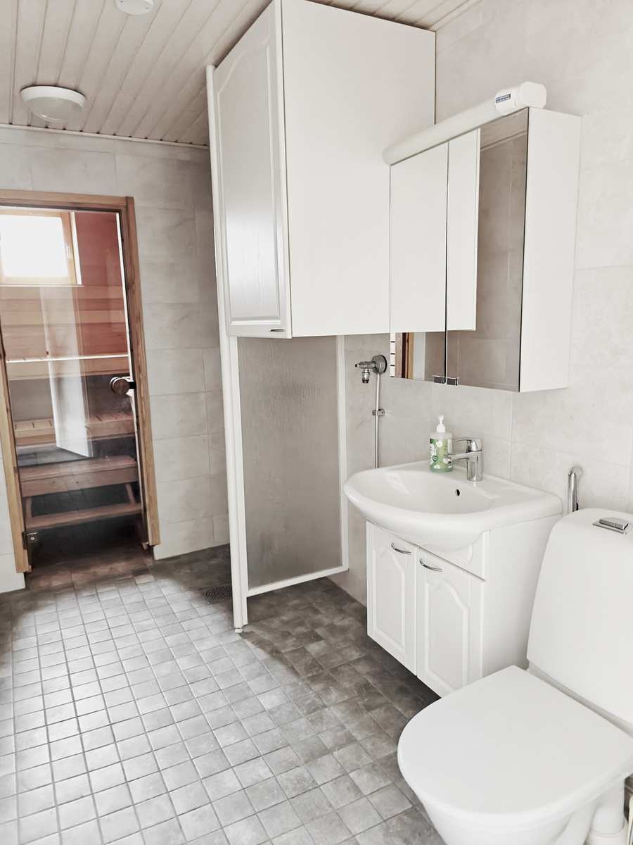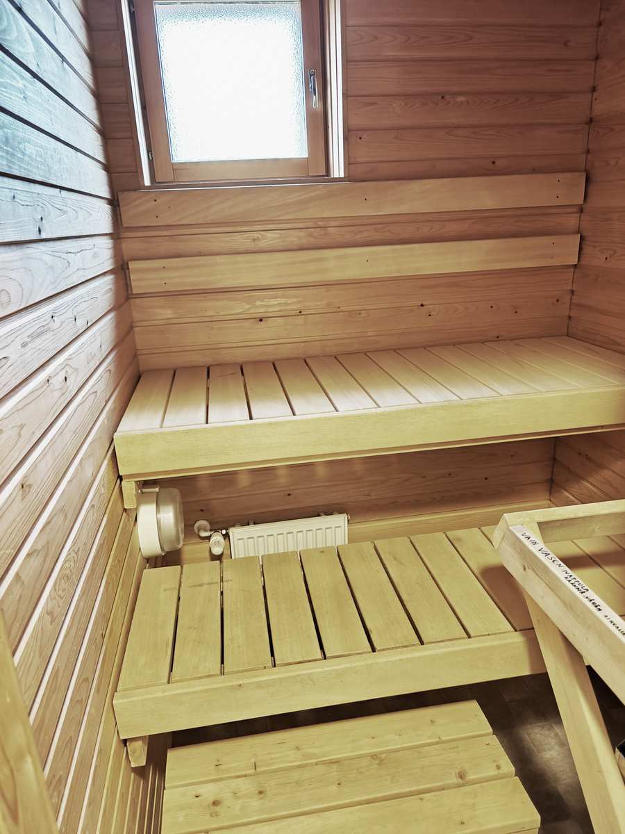 | Saunan pinnat | Seinät: puu Lattia: laatta |