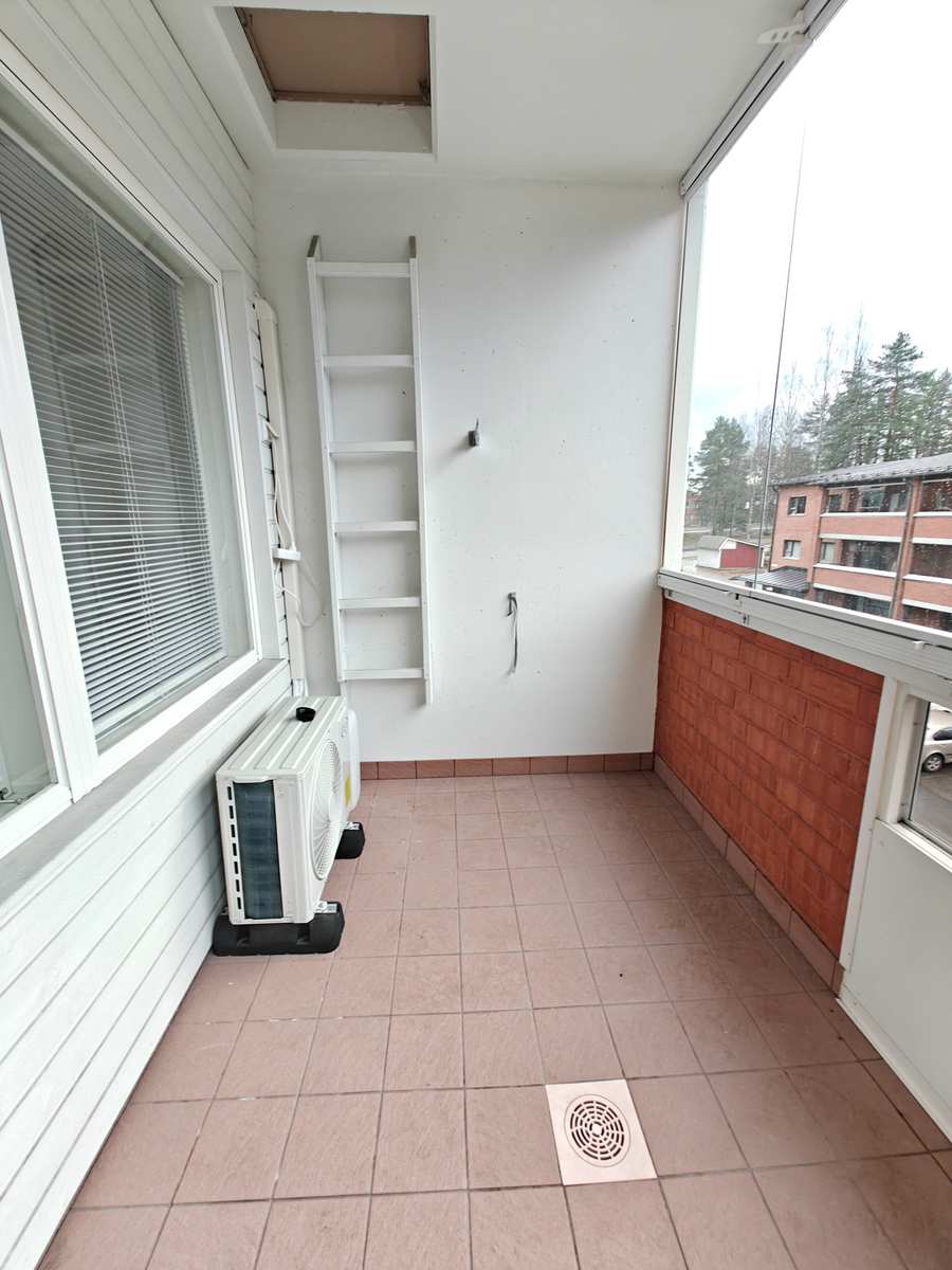 | Olohuone | Lattia: parketti, seinät: tapetti/maali, katto: ruiskumaali Käynti lasitetulle parvekkeelle. Ilmalämpöpumppu. |