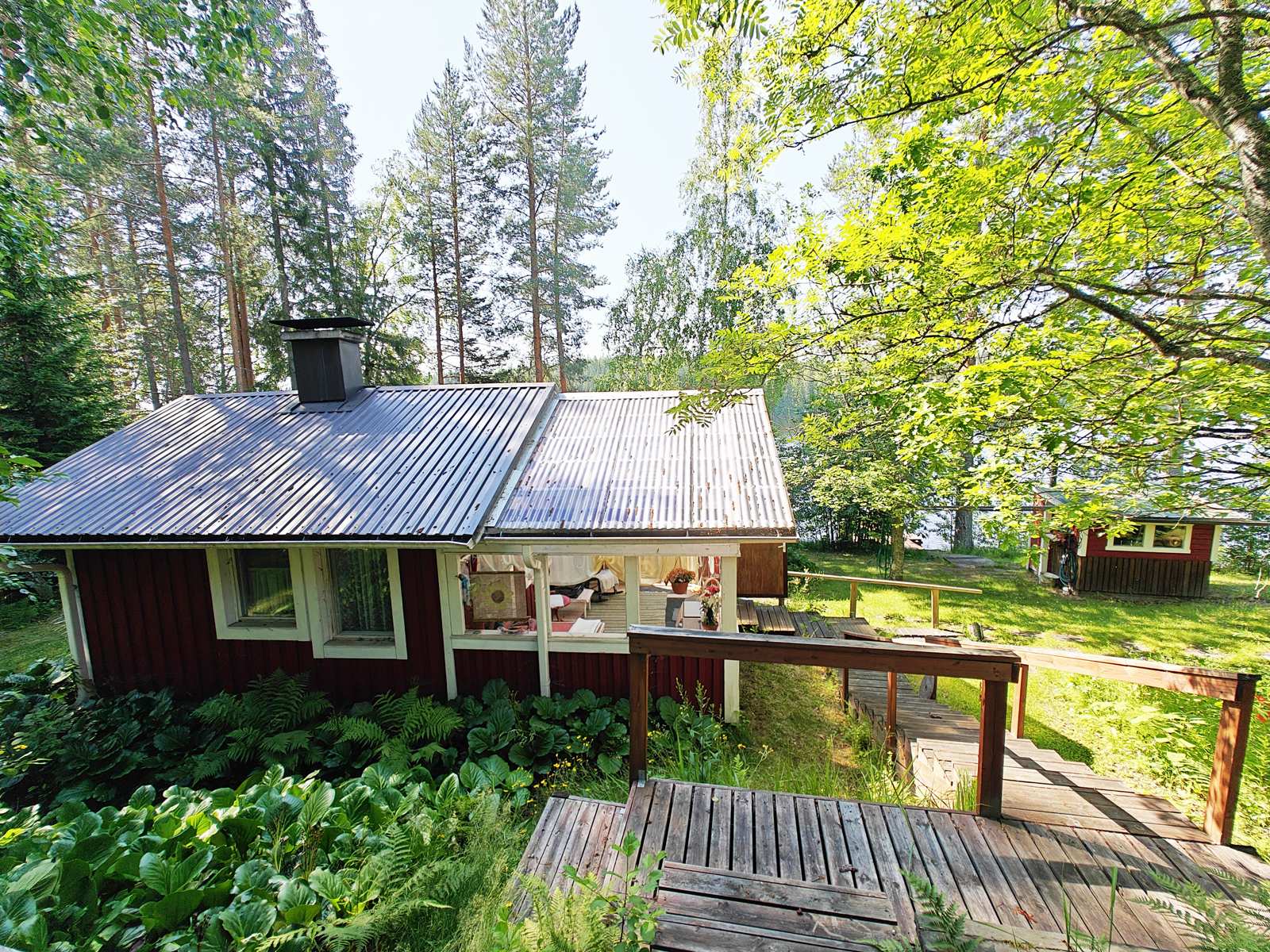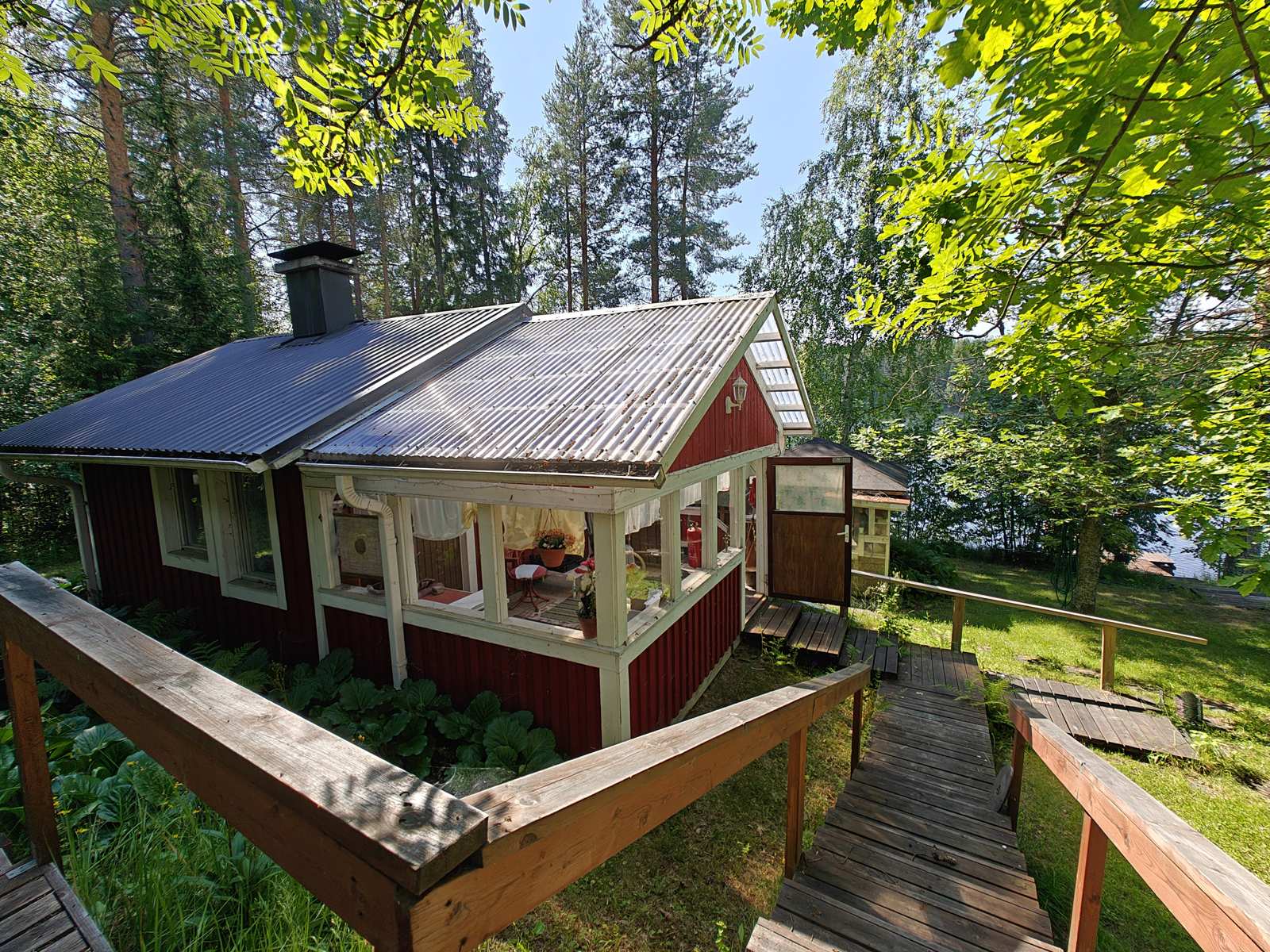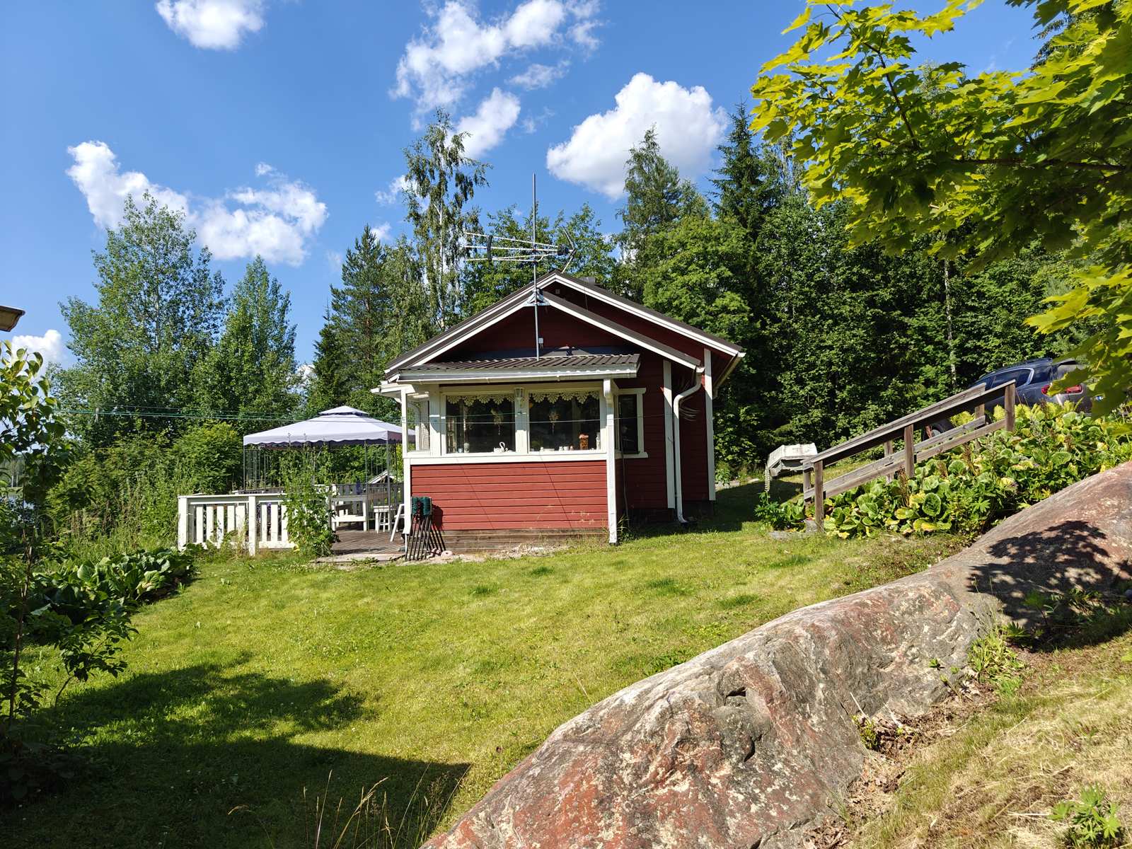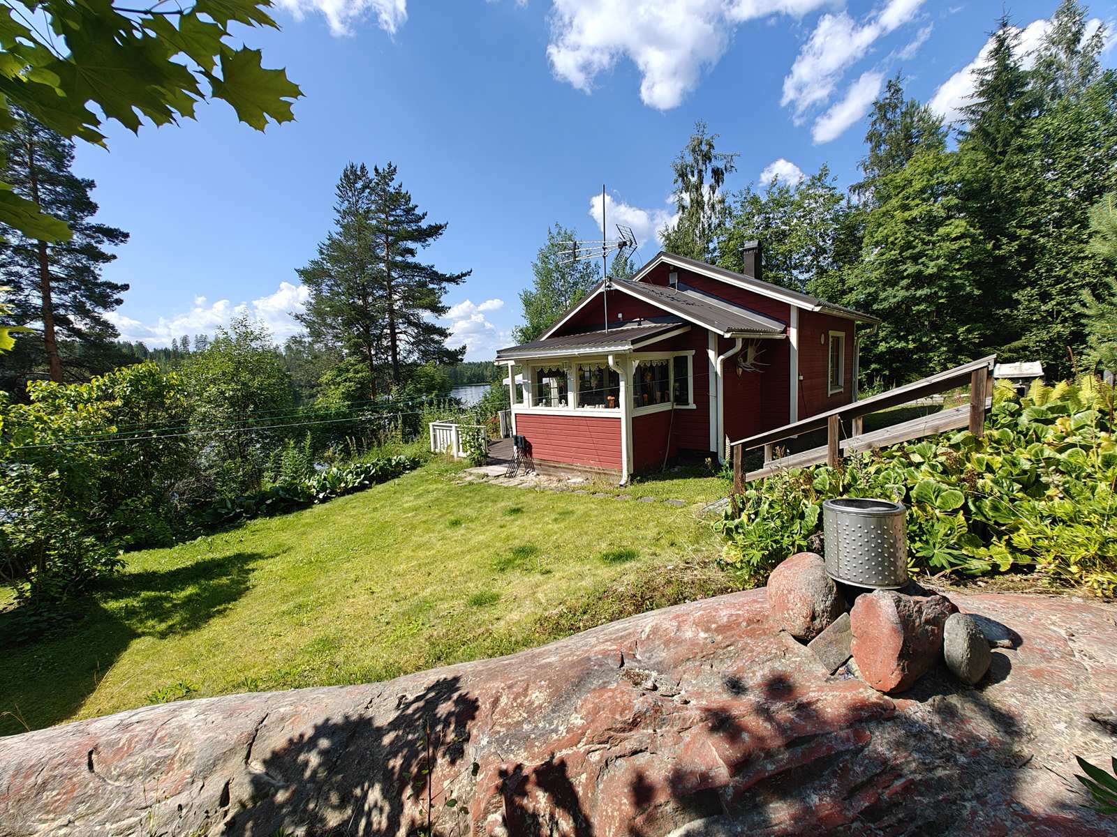 Rinnetontti tuo maisemaan ilmettä ja avaruutta. Päämökin avoin pohjaratkaisu ja tupakeittiö luovat mukavaa mökkitunnelmaa. Pihapiiristä löytyy lisäksi erillinen saunarakennus, jonka yhteydessä on vierashuone. Tontilla on myös varastorakennuksia sekä aitta, jossa on mahdollisuus yöpyä.