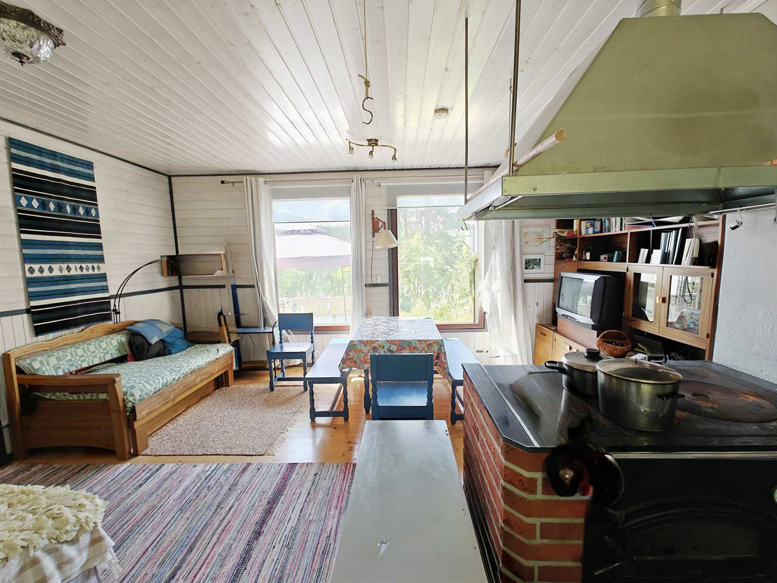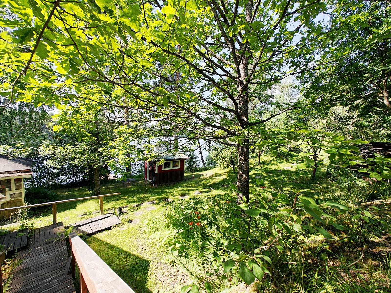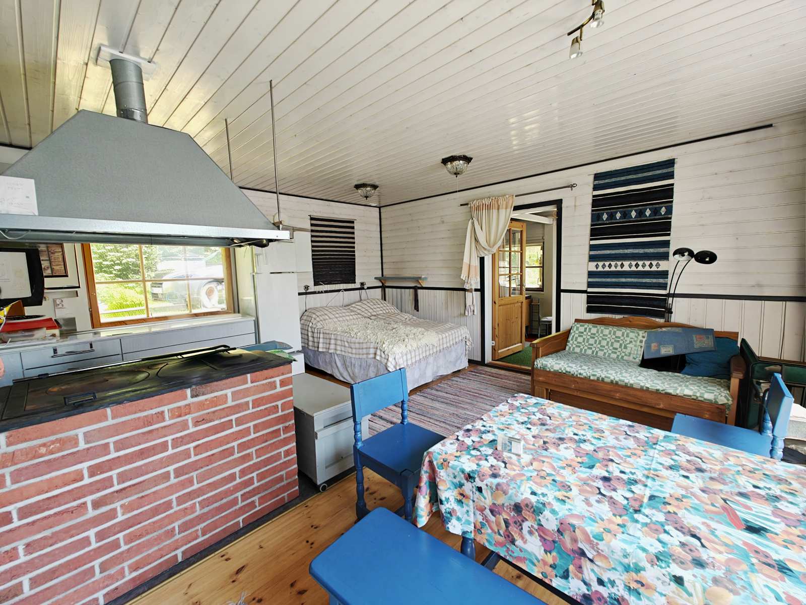 Rinnetontti tuo maisemaan ilmettä ja avaruutta. Päämökin avoin pohjaratkaisu ja tupakeittiö luovat mukavaa mökkitunnelmaa. Pihapiiristä löytyy lisäksi erillinen saunarakennus, jonka yhteydessä on vierashuone. Tontilla on myös varastorakennuksia sekä aitta, jossa on mahdollisuus yöpyä.