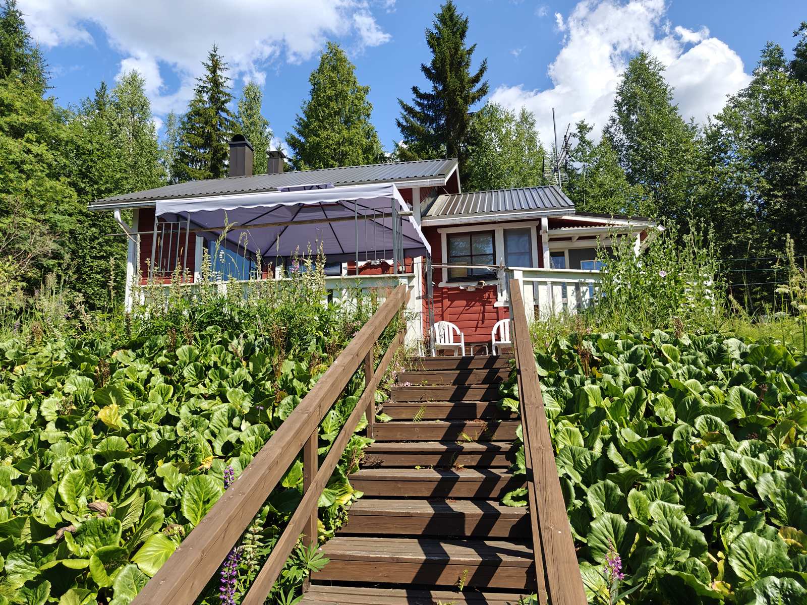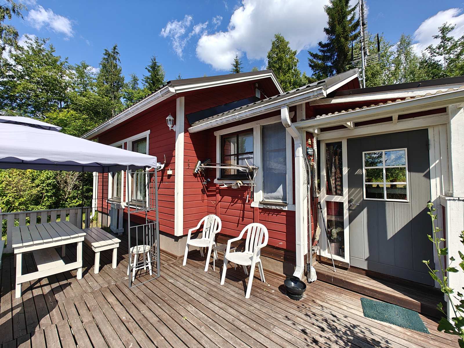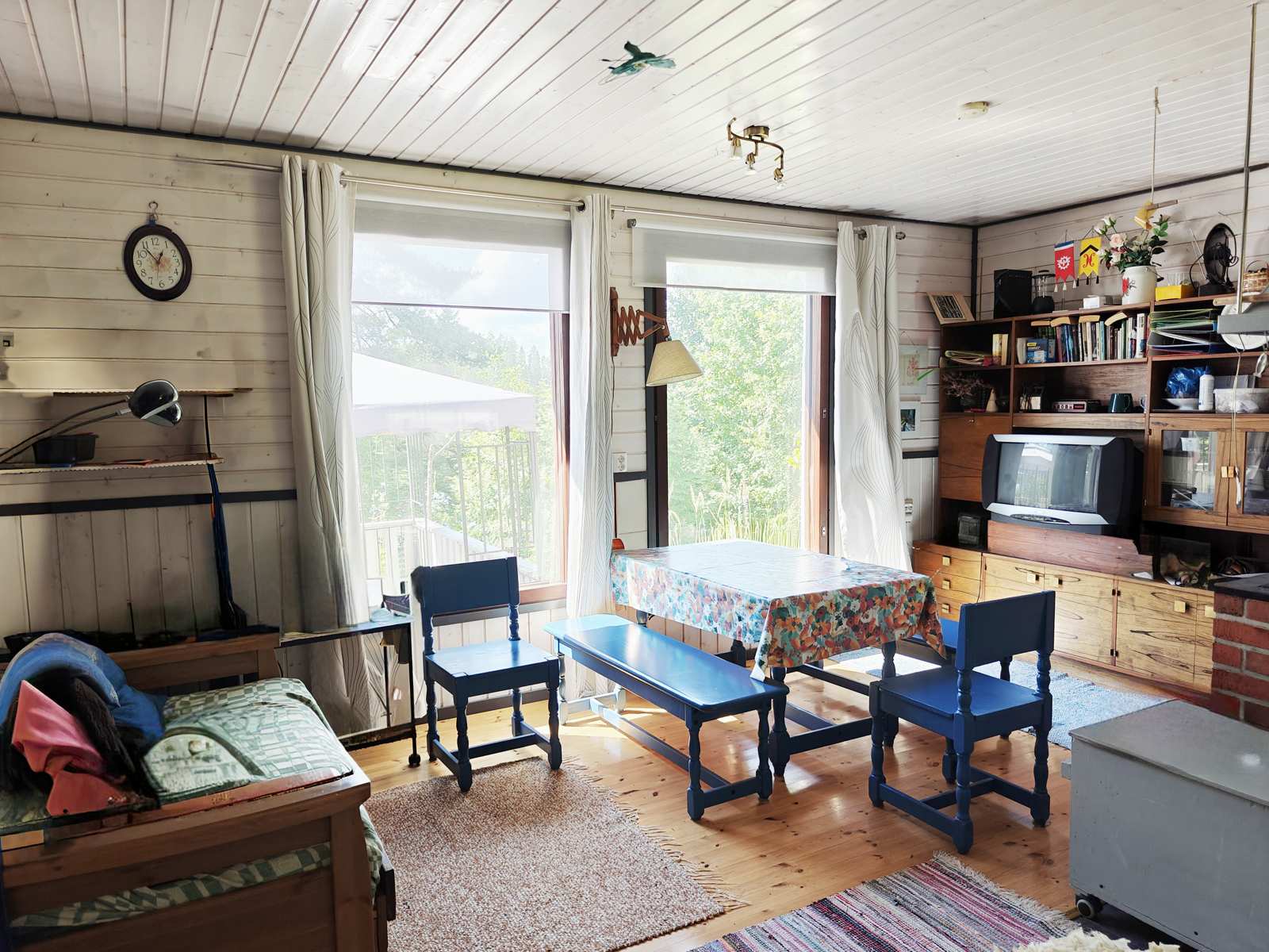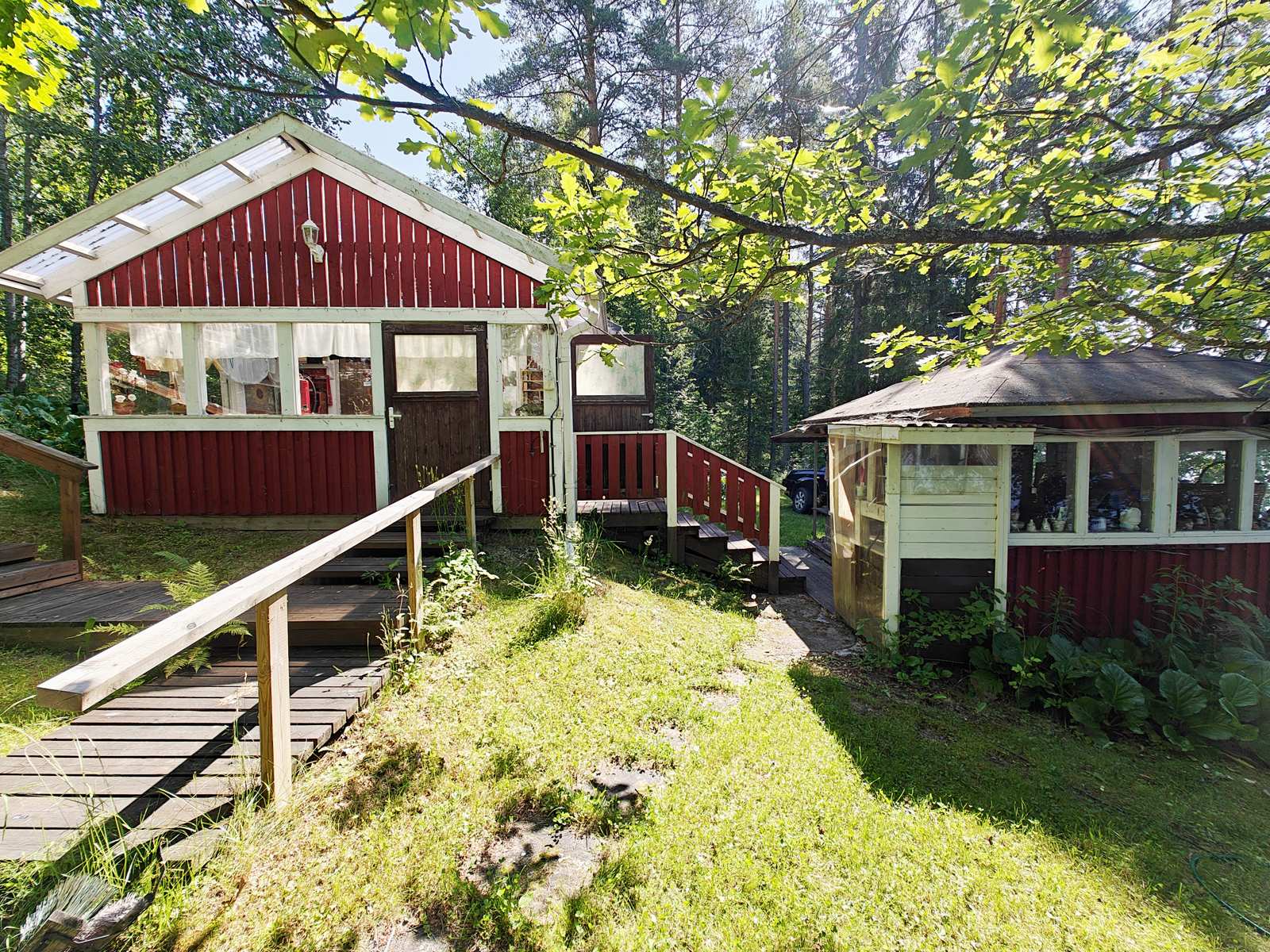 Rinnetontti tuo maisemaan ilmettä ja avaruutta. Päämökin avoin pohjaratkaisu ja tupakeittiö luovat mukavaa mökkitunnelmaa. Pihapiiristä löytyy lisäksi erillinen saunarakennus, jonka yhteydessä on vierashuone. Tontilla on myös varastorakennuksia sekä aitta, jossa on mahdollisuus yöpyä.