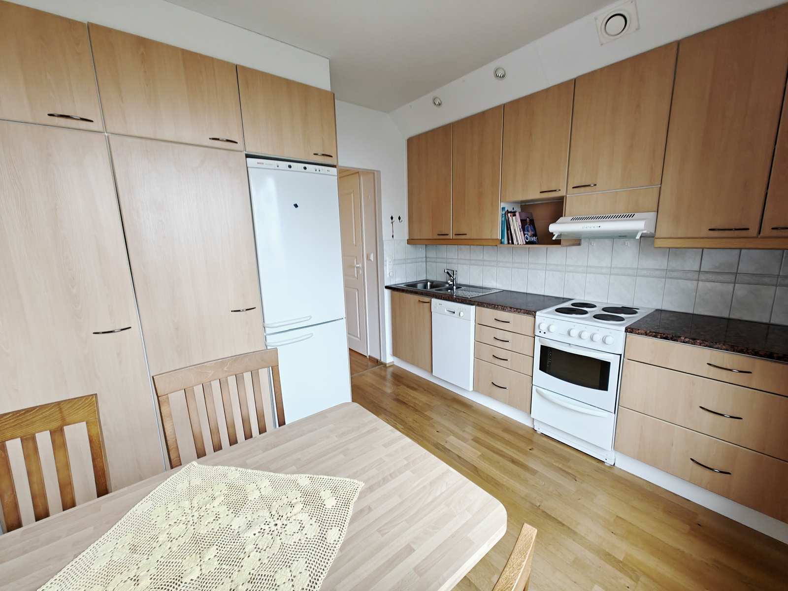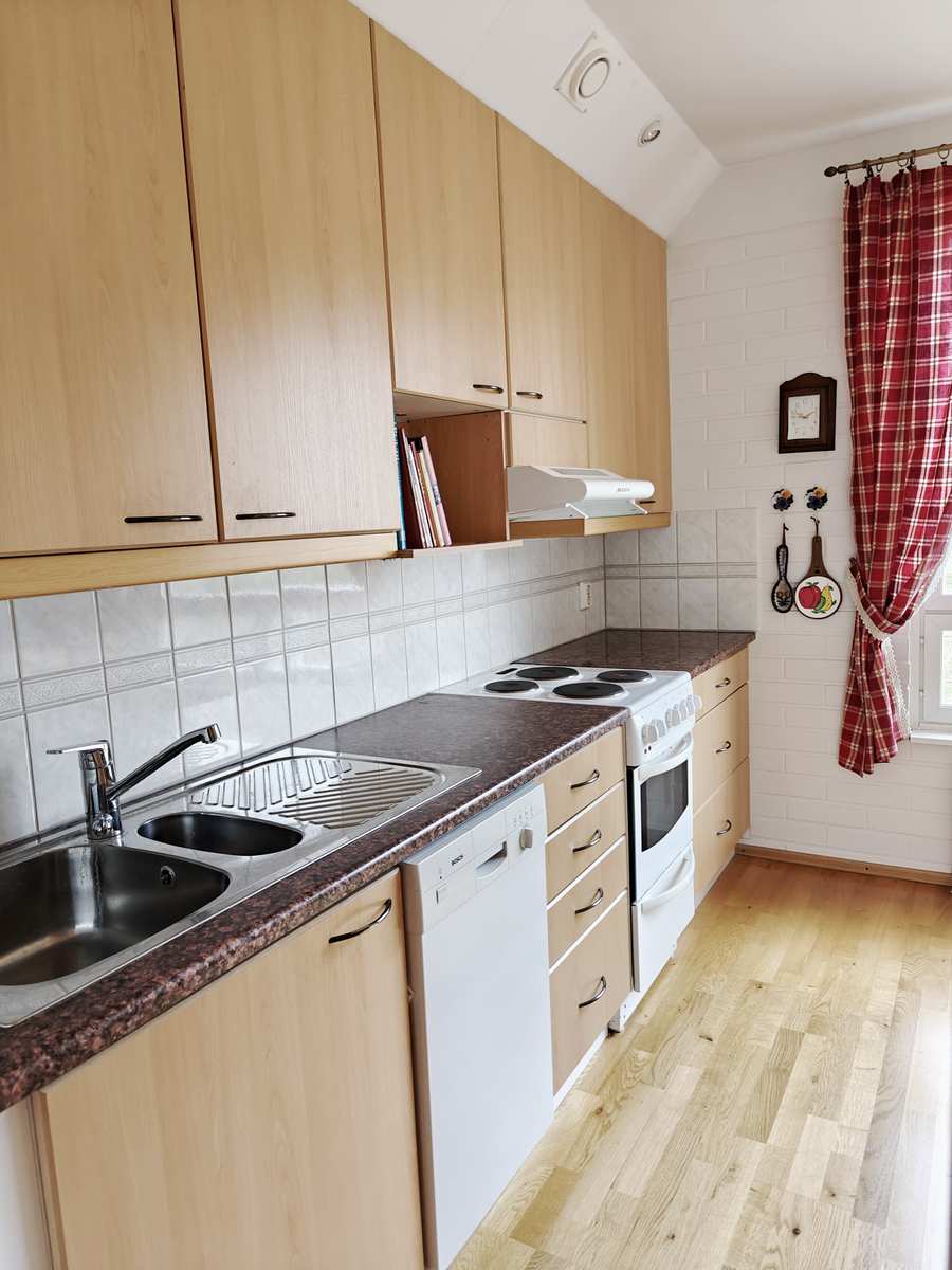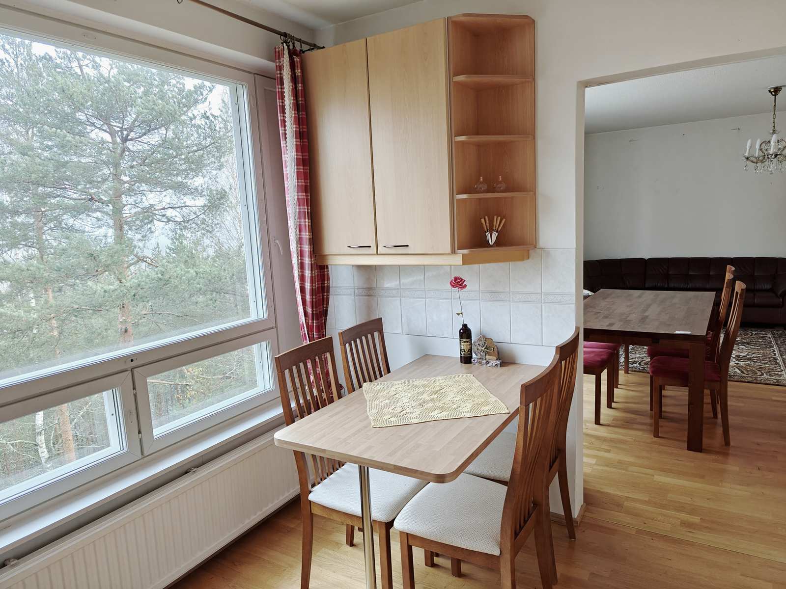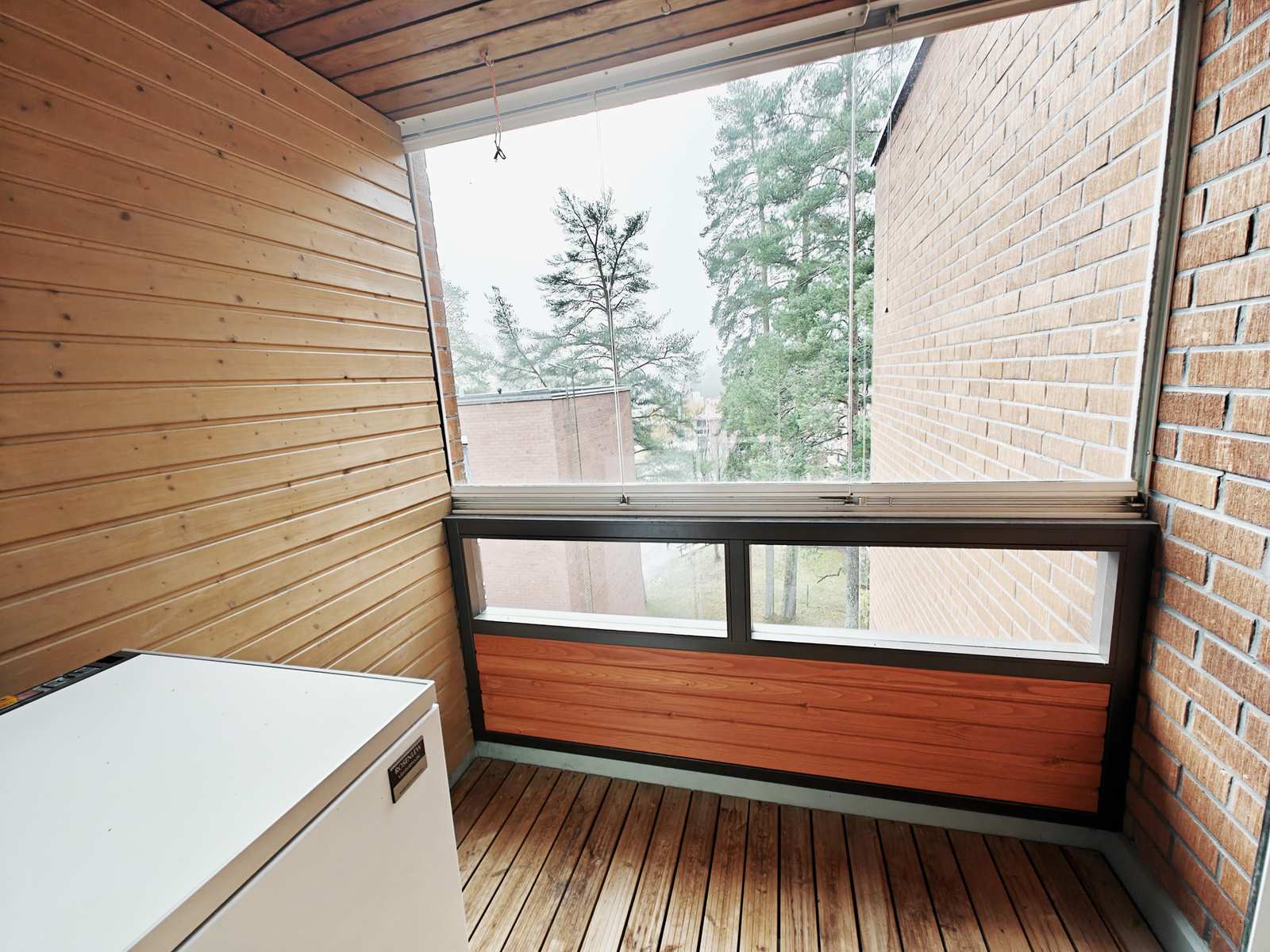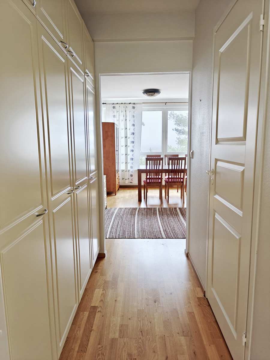 Tässä ylimmän kerroksen läpitalon huoneistossa nautit omasta rauhasta ja virkistävästä maisemasta olohuoneen isoista ikkunoista. Tarvittaessa huoneistoon saa asentaa viilentävän ilmalämpöpumpun.