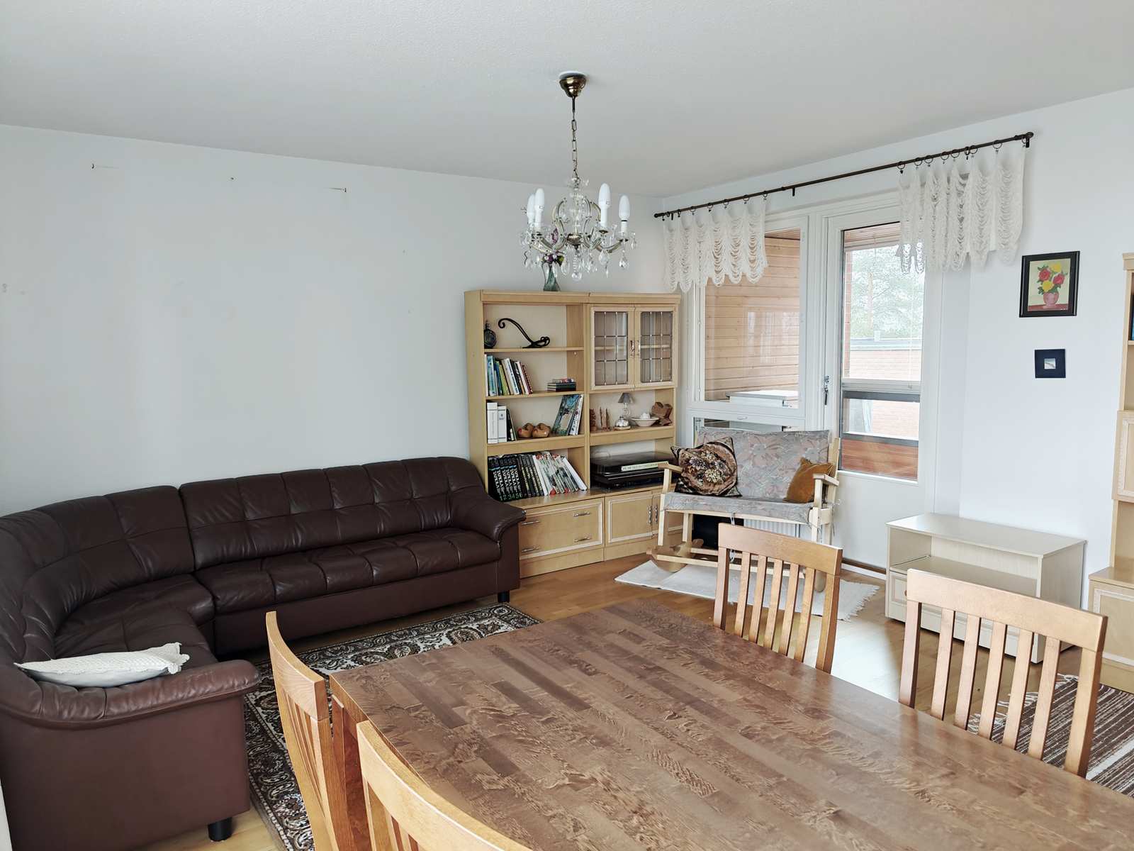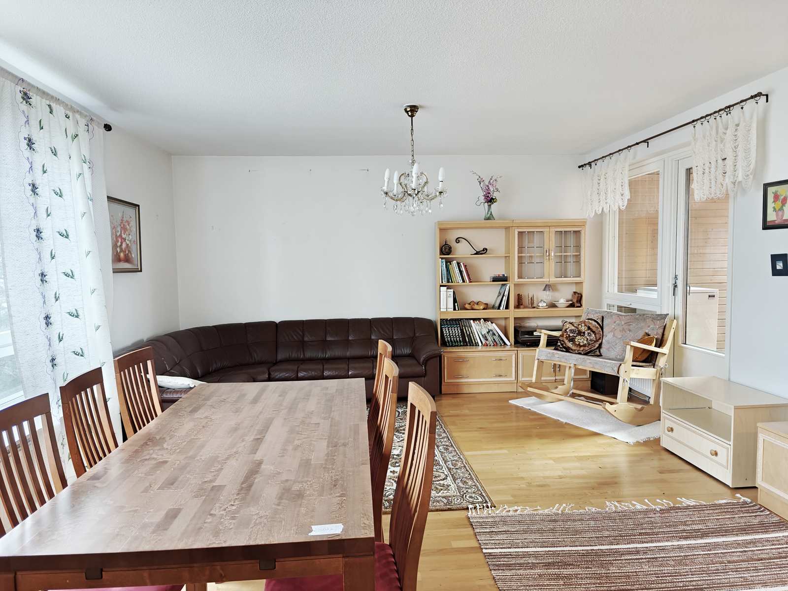 | Olohuone | Lattia: laminaatti, seinät: maali, katto: ruiskumaali. Käynti lasitetulle parvekkeelle. |