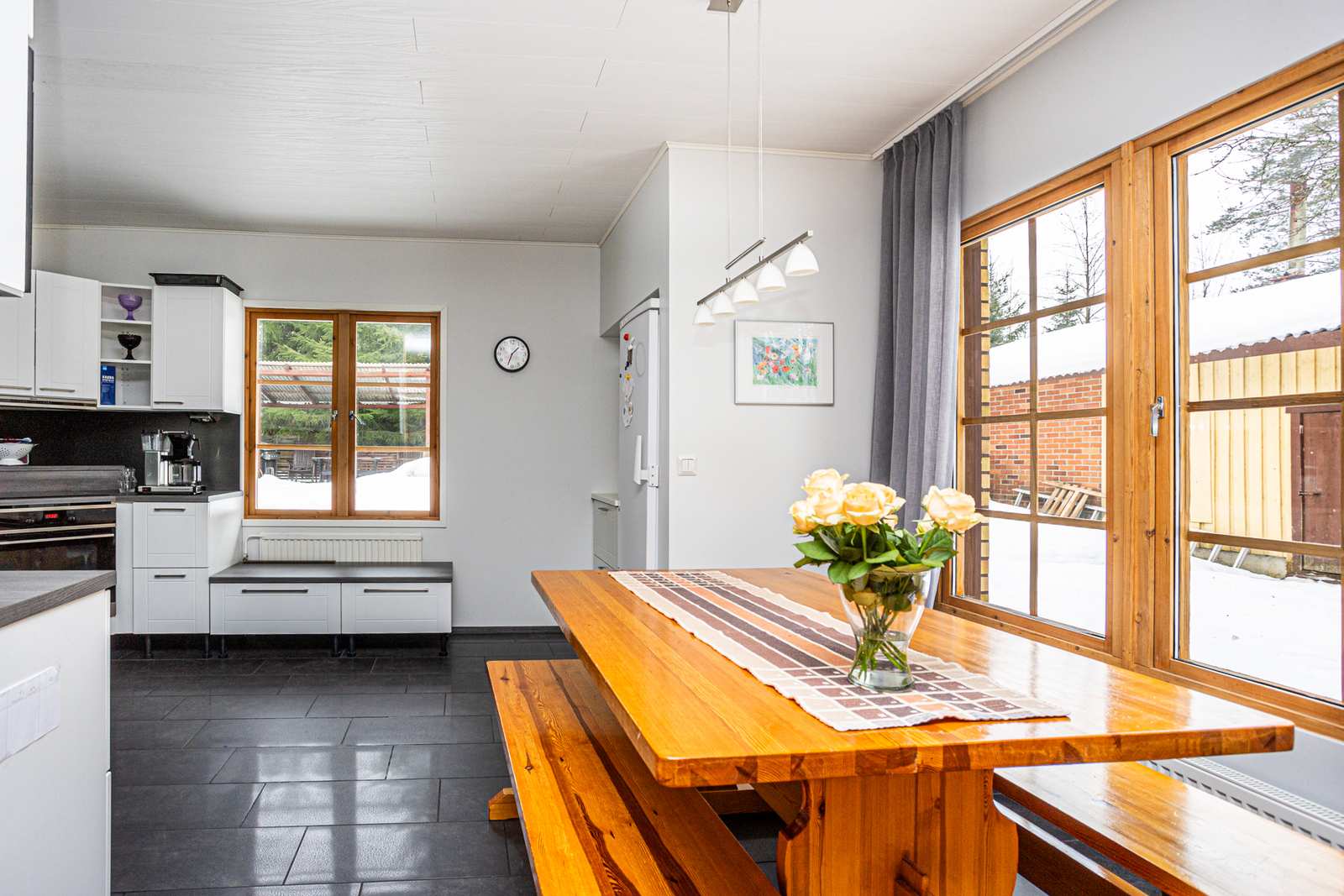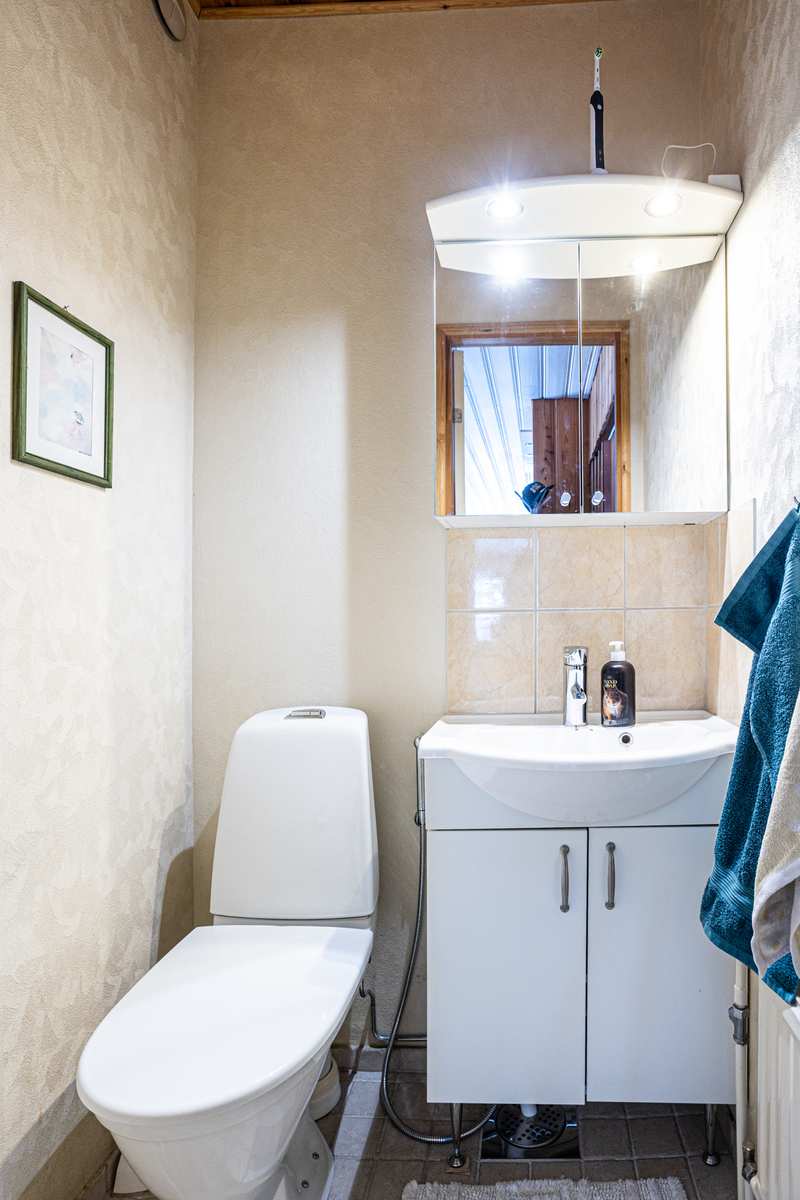 | Tehdyt korjaukset ja remontit | 2026: yläkerran patterien ilmaus, khh:een lattiatermostaatti 2025: salaojaremontti sadevesikaivot ja -vesien ohjaus, maanpinnan muotoilu/takapiha, valesokkeli korjattu keittiöstä takapihan puoleiselta ulkoseinältä ja+ kylmiön kohdalta, kylmiö purettu 2023: ilmavesilämpöpumppu asennettu öljykattilan tilalle, sähköpääkeskus uusittu 2020: vesikatto maalattu 2019: keittiö remontoitu, olohuoneen pattereita uusittu 2010: pesutilat ja sauna remontoitu, yläkerran kahteen makuuhuoneeseen vaihdettu kipsilevyt lastulevyjen tilalle |