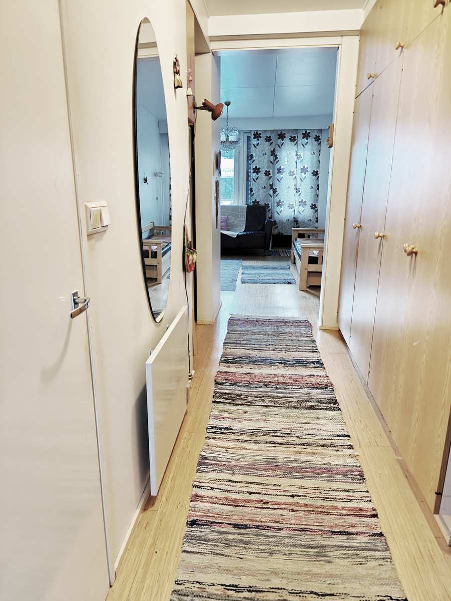 Olohuoneesta on suora kulku omalle takapihalle, joka tuo arkeen mukavasti lisätilaa ja mahdollisuuden nauttia ulkoilmasta omassa rauhassa. Pesuhuone on tilava ja odottaa uudistajaansa – tästä saa helposti nykyaikaisen ja toimivan kokonaisuuden. Asunnossa on myös oma pieni sauna, joka tekee asumisesta erityisen miellyttävää.