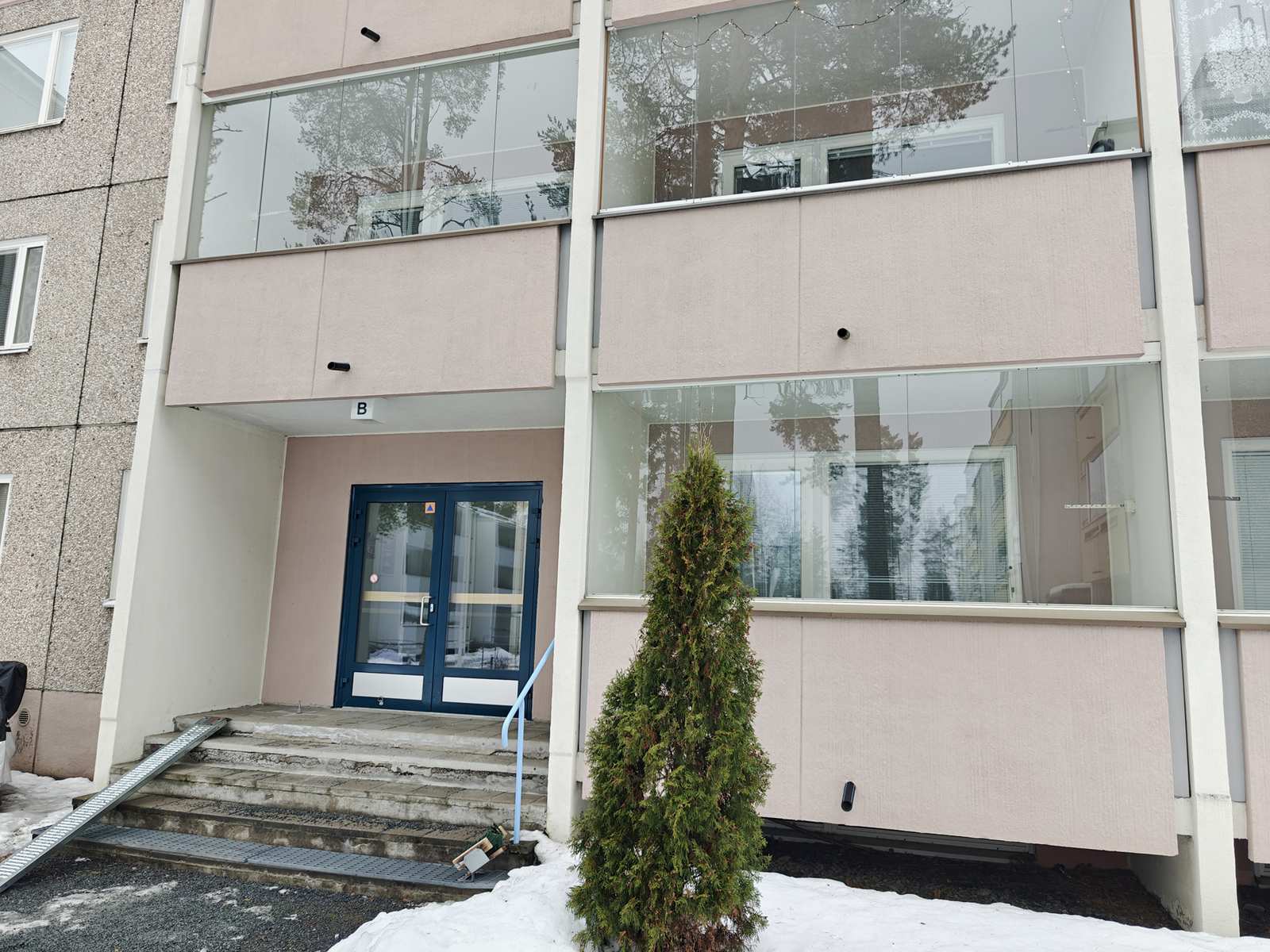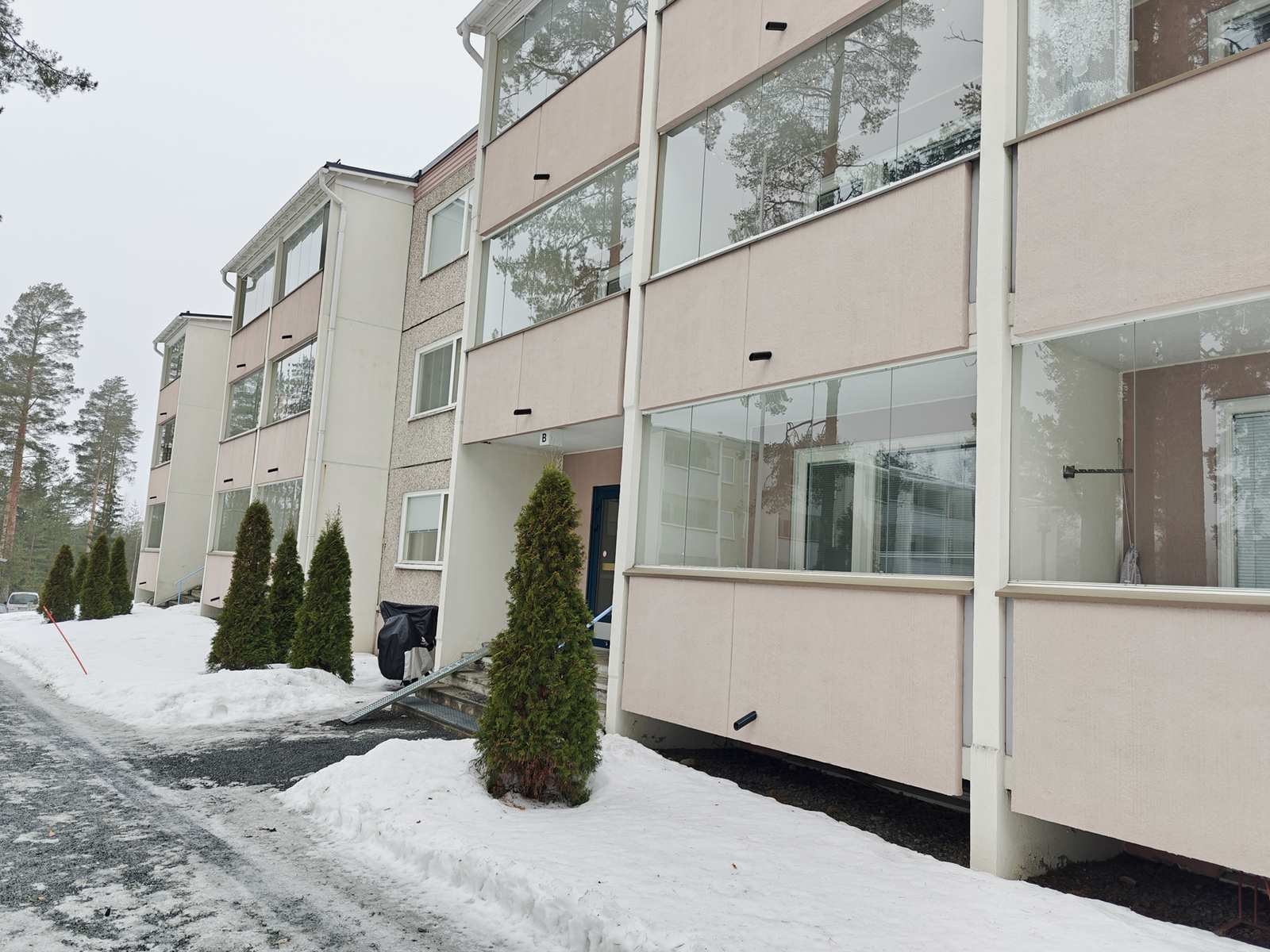 1 krs:n läpitalon huoneisto. Huoneistolla tilava lasitettu eteläparveke. Taloyhtiössä uima-allas.
