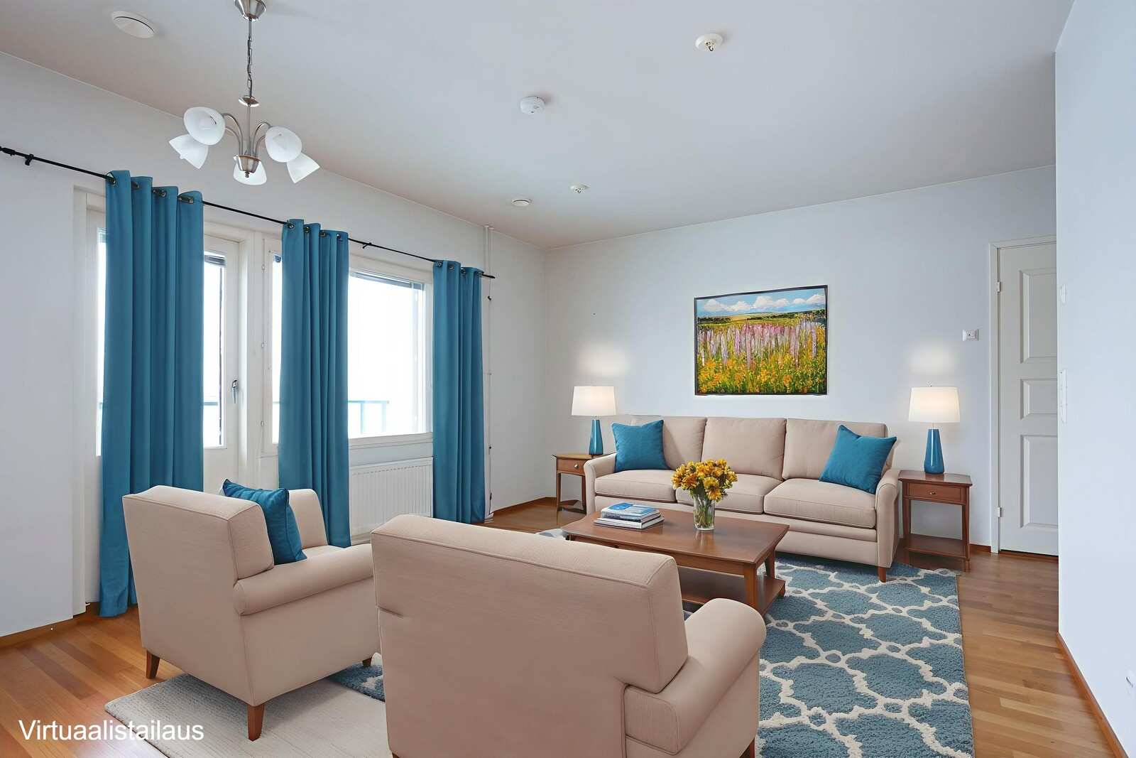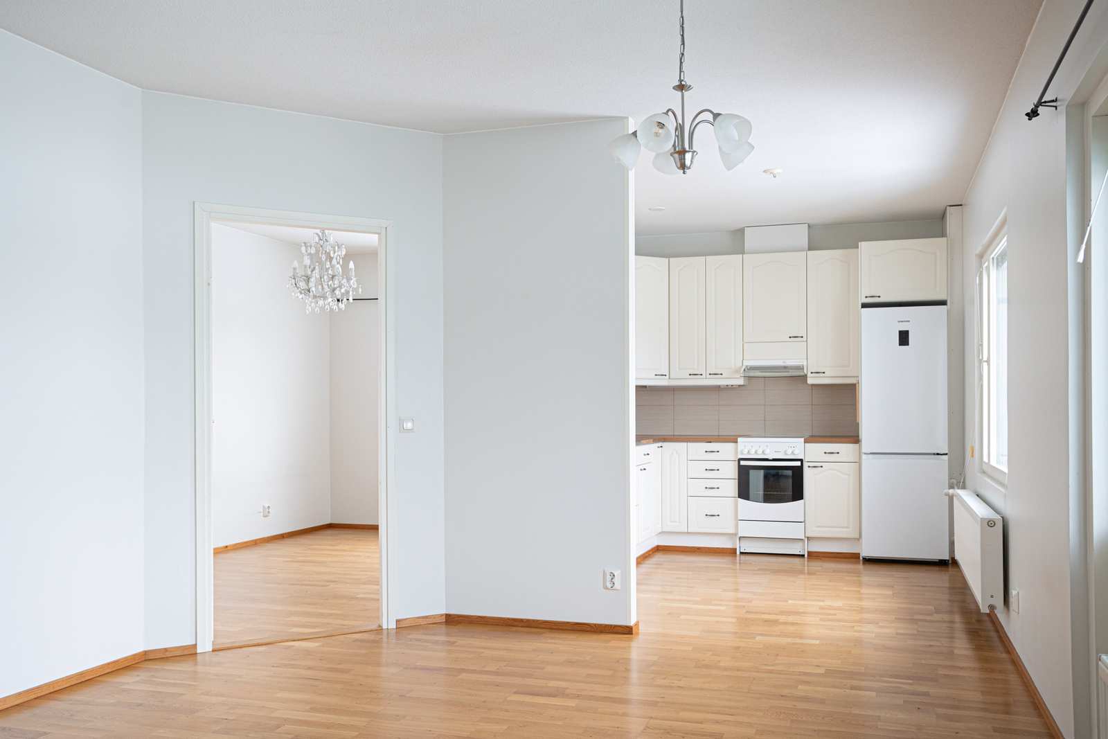 | Olohuone | Lattiassa parketti, seinissä maalipinta, käynti lasitetulle parvekkeelle. Näkymät keskustaan. |
