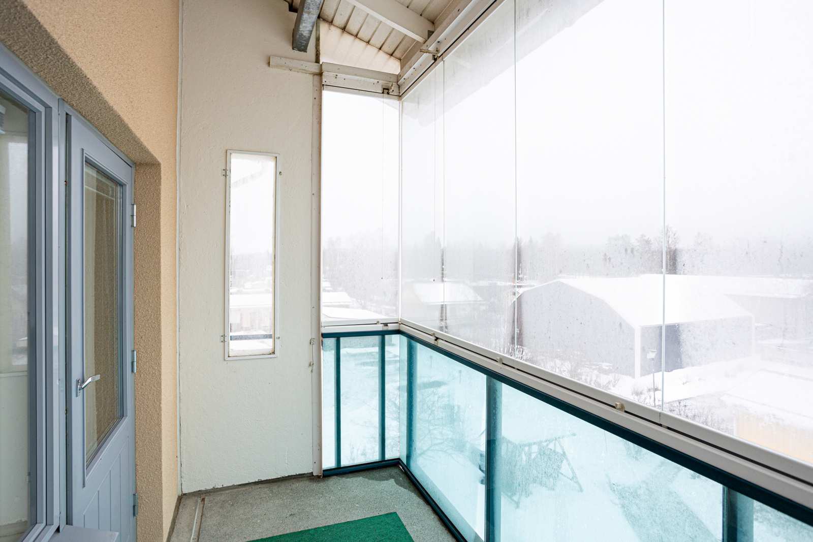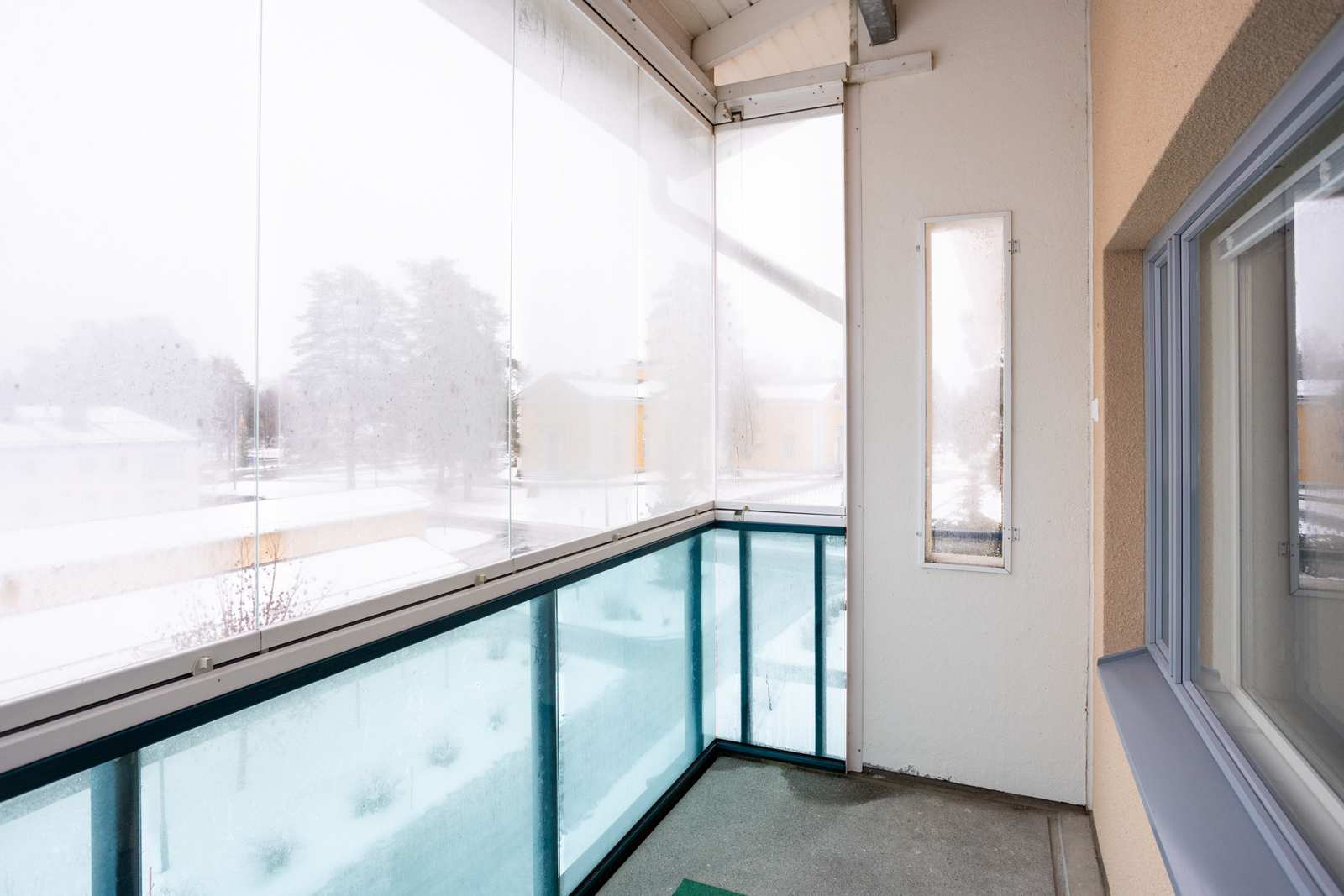 | Näkymät | Lasitettu parveke, näkymät idän suuntaan kirkonkylän keskustaan. |