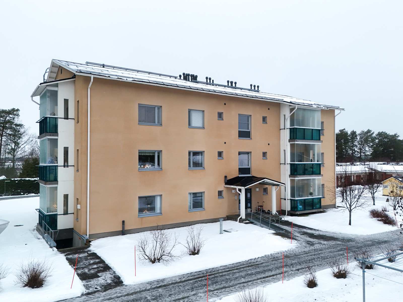 | Tehdyt korjaukset ja remontit | Kunnossapitotarveselvitys: 2019 ilmastoinnin nuohous ja säätö, väestönsuojan tiiveyskoe, 2021 lintuverkot katonrajaan, 2022 parvekelasitusten korjaus ja huolto, 2023 autokatokseen valojen kellokytkin, autokatoksen lahonneiden otsalautojen uusiminen. |